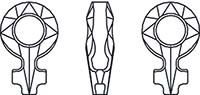 Прозрачные ювелирные камни Swarovski в форме женского символа. Эти кристаллы используют для создания украшений в технике сутажной вышивки, при работе с полимерной глиной или мастикой Ceralun. Вклеивают в изделия из кожи и дерева, оправляют в серебро и другие металлы. Оплетают бисером и используют для вышивания вместе с нитями, бусинами и стразами других разновидностей.