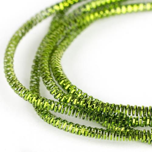 Трунцал— это разновидность витой канители из плоской проволоки, которую наматывают на многогранную основу, имеет ребристую поверхность. Благодаря этому, трунцал отлично преломляет свет и имеет выраженное сияние и блеск. Трунцал достаточно мягкий, легко гнется, создает дополнительный рельеф и фактурность в вышивке. Его чаще используют для выделения деталей и создания объема. Также прекрасно подходит для заполнения поверхности вышивки. Толщина 0.7-3 .0 мм.