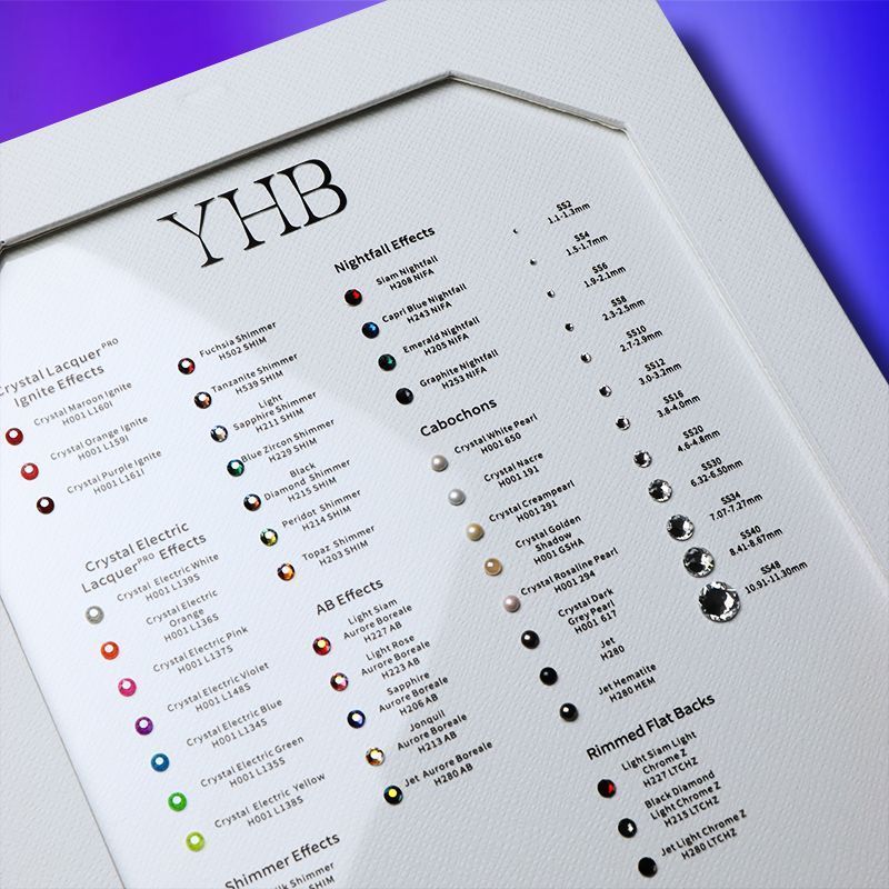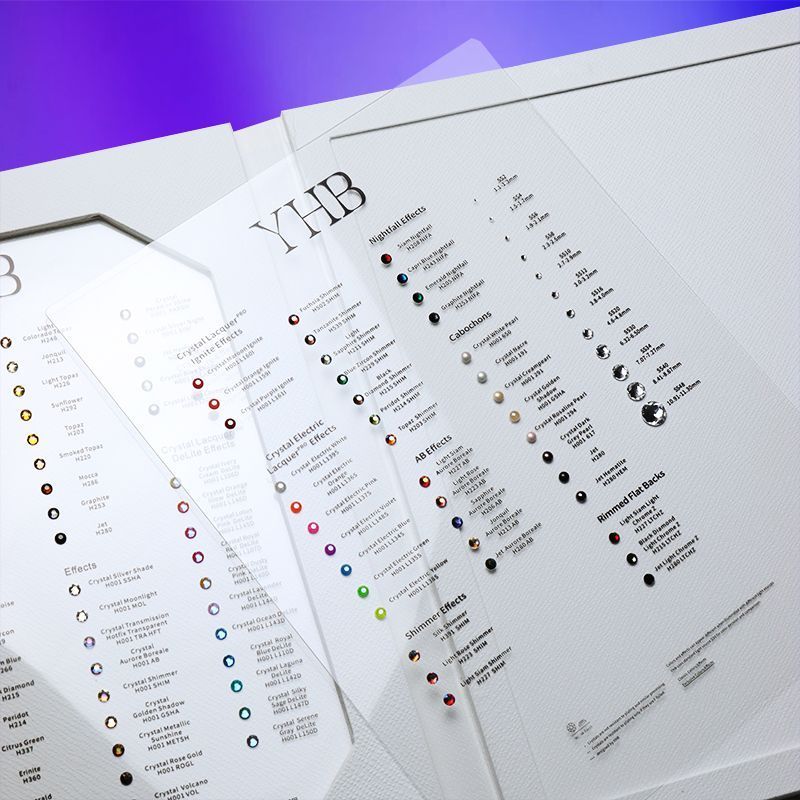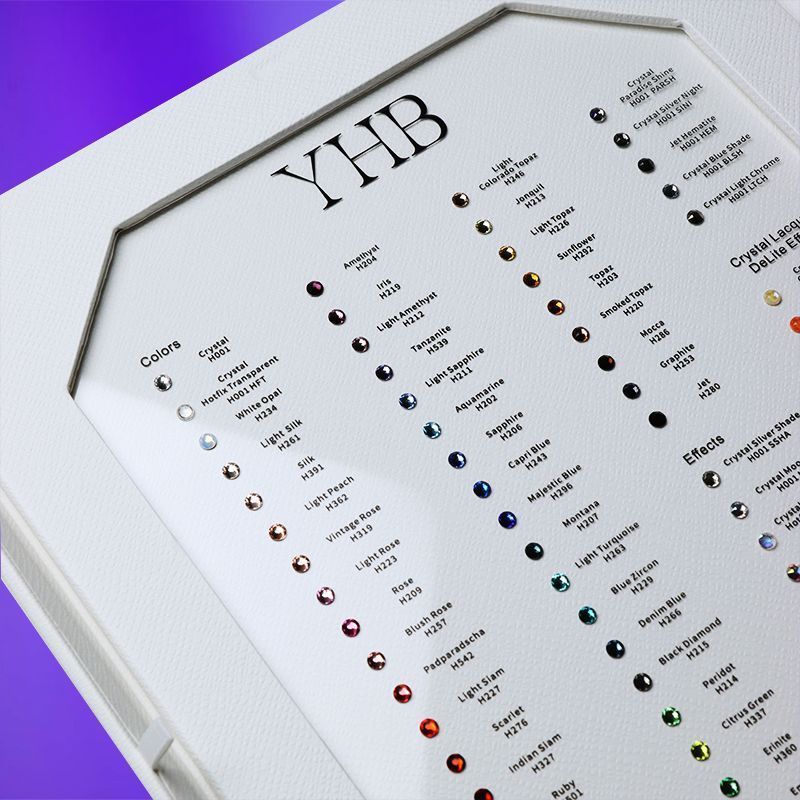 Работа с блеском требует точности. Один и тот же аксессуар в цвете Siam или Ruby может восприниматься совершенно по-разному в зависимости от подтона, материала основы и даже освещения. Именно поэтому карта цветов страз — не просто удобный инструмент, а необходимая часть процесса выбора. Без неё дизайнер словно рисует вслепую: он может угадать, но не увидеть настоящего результата. Палитра помогает раскрыть замысел, точно определить, какой эффект будет производить изделие при движении, под светом прожектора или в естественном освещении.