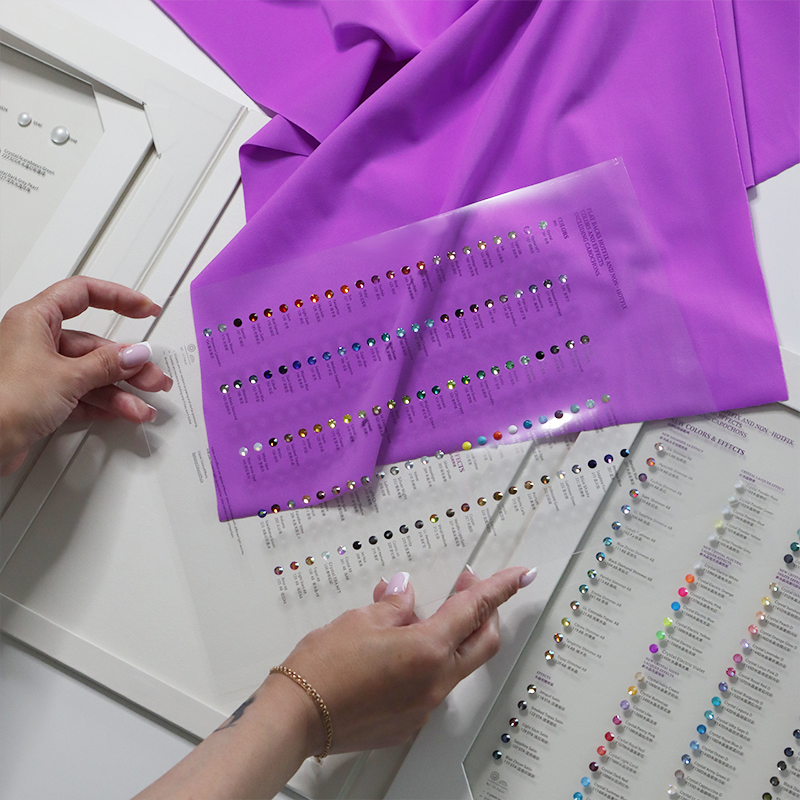 Именно здесь палитра становится не просто карточкой, а рабочим инструментом дизайнера, гимнаста, художника по костюмам. Она помогает мыслить цветом, понимать контексты и связи между оттенками. Например, при подборе оттенков для восточного костюма важно учесть не только основной цвет ткани, но и то, какие стразы будут использоваться — классический crystal, блестящий sunshine или глубокий hematite. Цветовая карта позволяет проводить такие сопоставления и находить идеальный баланс.