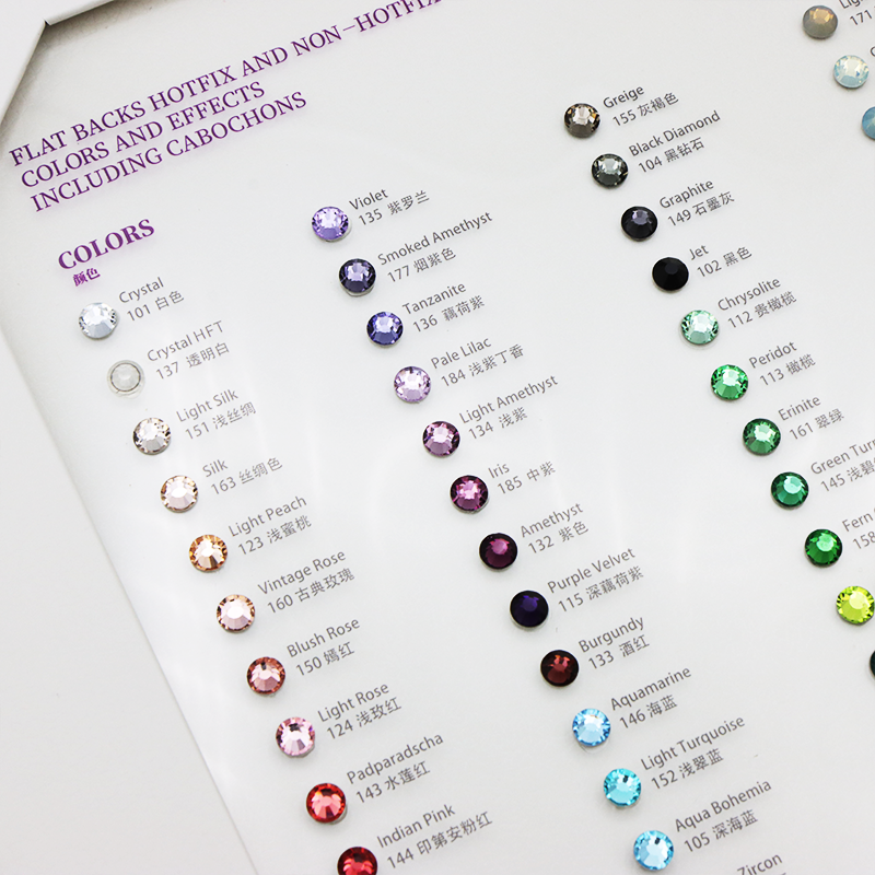 Работа с блеском требует точности. Один и тот же аксессуар в цвете Siam или Ruby может восприниматься совершенно по-разному в зависимости от подтона, материала основы и даже освещения. Именно поэтому карта цветов страз — не просто удобный инструмент, а необходимая часть процесса выбора. Без неё дизайнер словно рисует вслепую: он может угадать, но не увидеть настоящего результата. Палитра помогает раскрыть замысел, точно определить, какой эффект будет производить изделие при движении, под светом прожектора или в естественном освещении.