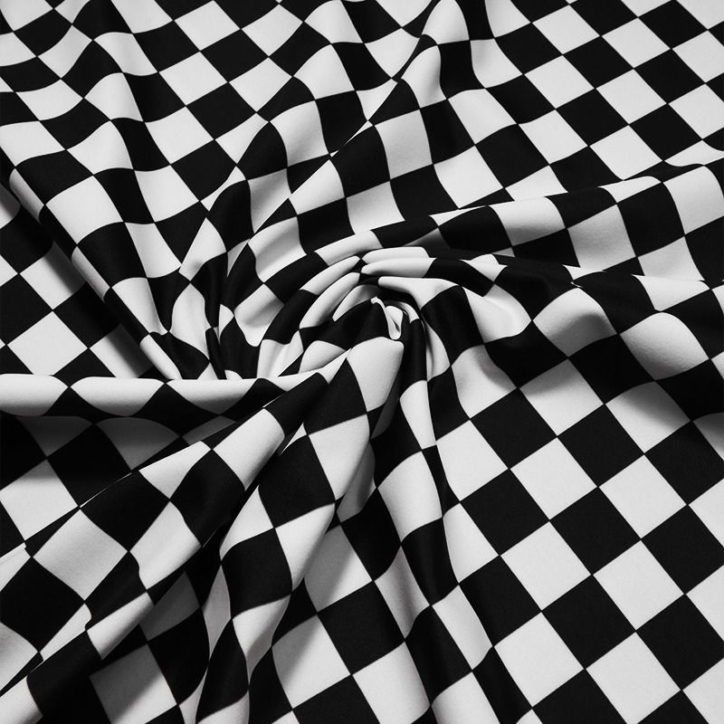 Эта ткань создана для тех, кто знает цену движению. Высокая плотность полотна, эластичность во всех направлениях, мягкость и упругая структура — всё это делает трикотажное полотно на основе полиэстера и эластана настоящей находкой для пошива купальников, костюмов, леггинсов, а иногда и цельных сценических нарядов. Благодаря сочетанию плотной посадки и ярких принтов ткань не просвечивает, даже в растянутом виде, оставаясь визуально целостной. Это особенно важно при работе с крупными узорами, клеткой, полосками и абстрактными мотивами, где требуется чёткая геометрия. Кроме того, Friedman отлично справляется с изгибами и объёмами: материал не деформируется, не даёт пузырей, не искажает пропорции изделия.