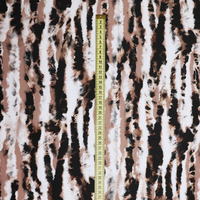 Эта ткань создана для тех, кто знает цену движению. Высокая плотность полотна, эластичность во всех направлениях, мягкость и упругая структура — всё это делает трикотажное полотно на основе полиэстера и эластана настоящей находкой для пошива купальников, костюмов, леггинсов, а иногда и цельных сценических нарядов. Благодаря сочетанию плотной посадки и ярких принтов ткань не просвечивает, даже в растянутом виде, оставаясь визуально целостной. Это особенно важно при работе с крупными узорами, клеткой, полосками и абстрактными мотивами, где требуется чёткая геометрия. Кроме того, Friedman отлично справляется с изгибами и объёмами: материал не деформируется, не даёт пузырей, не искажает пропорции изделия.