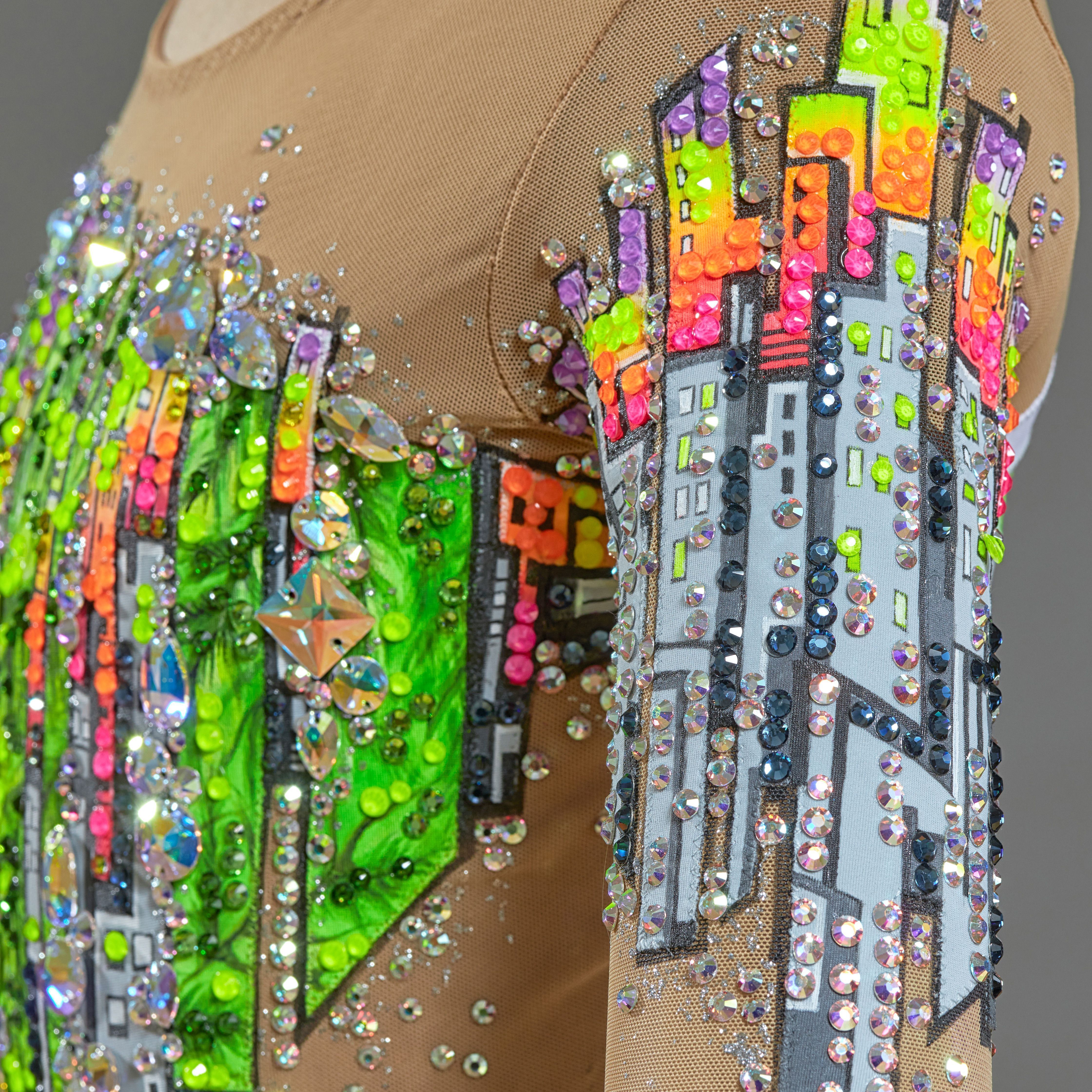 В дизайне купальника мы постарались уловить блеск тех самоцветов да кристаллов, какими богат наш край и Екатеринбург. Через узор и цвета приоткрыли сокровищницу, чтобы блеснули кристаллы своими гранями, заиграли переливами и очаровали всех, кто их увидит.