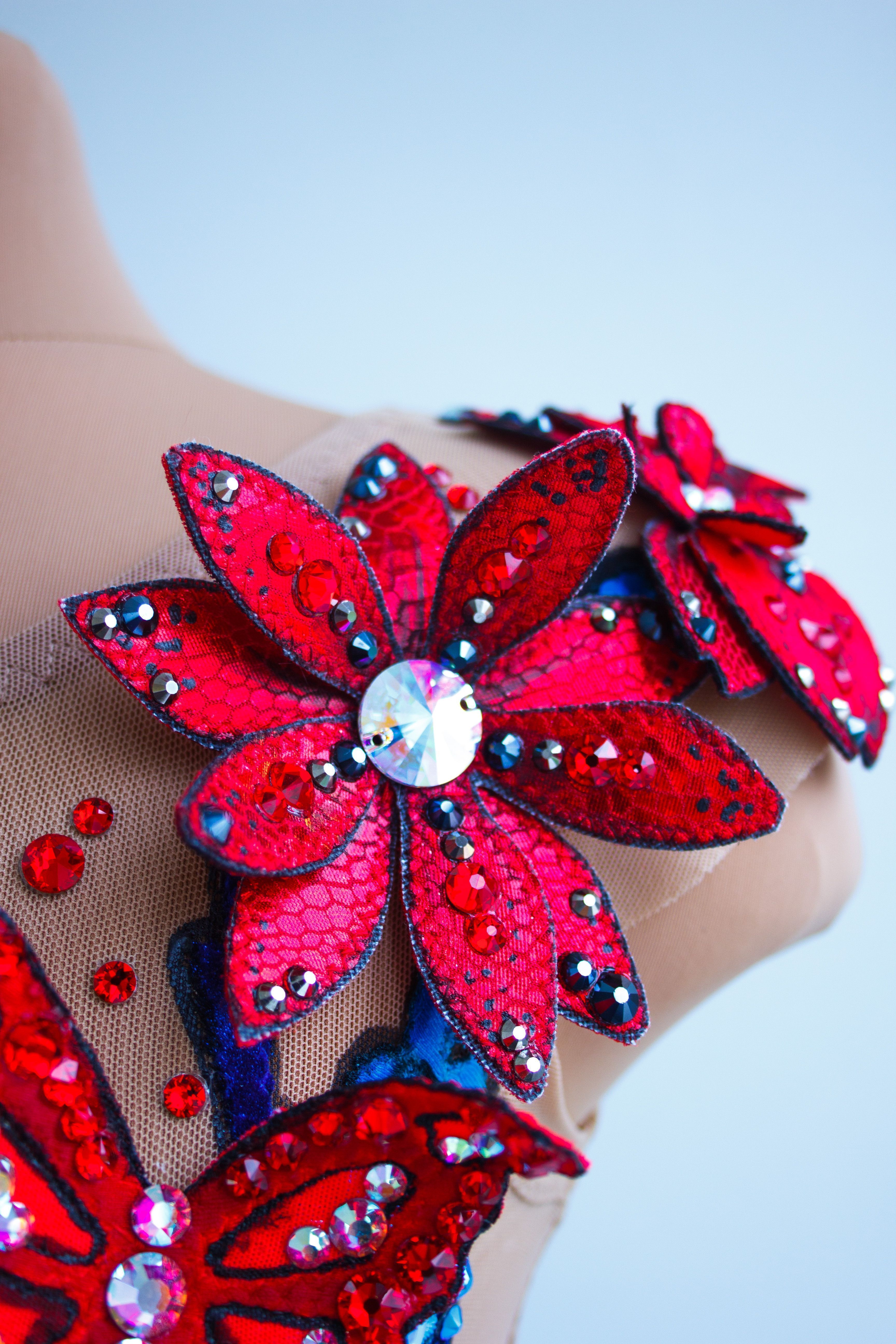 Идея купальника появилась быстро! Просматривая конкурсные кристаллы, взгляд остановился на чудесных сердечках! Crystal love - ну конечно!!! Акцентом станут сердечки! А красный цвет идеально подчеркивается сине-голубой гаммой!