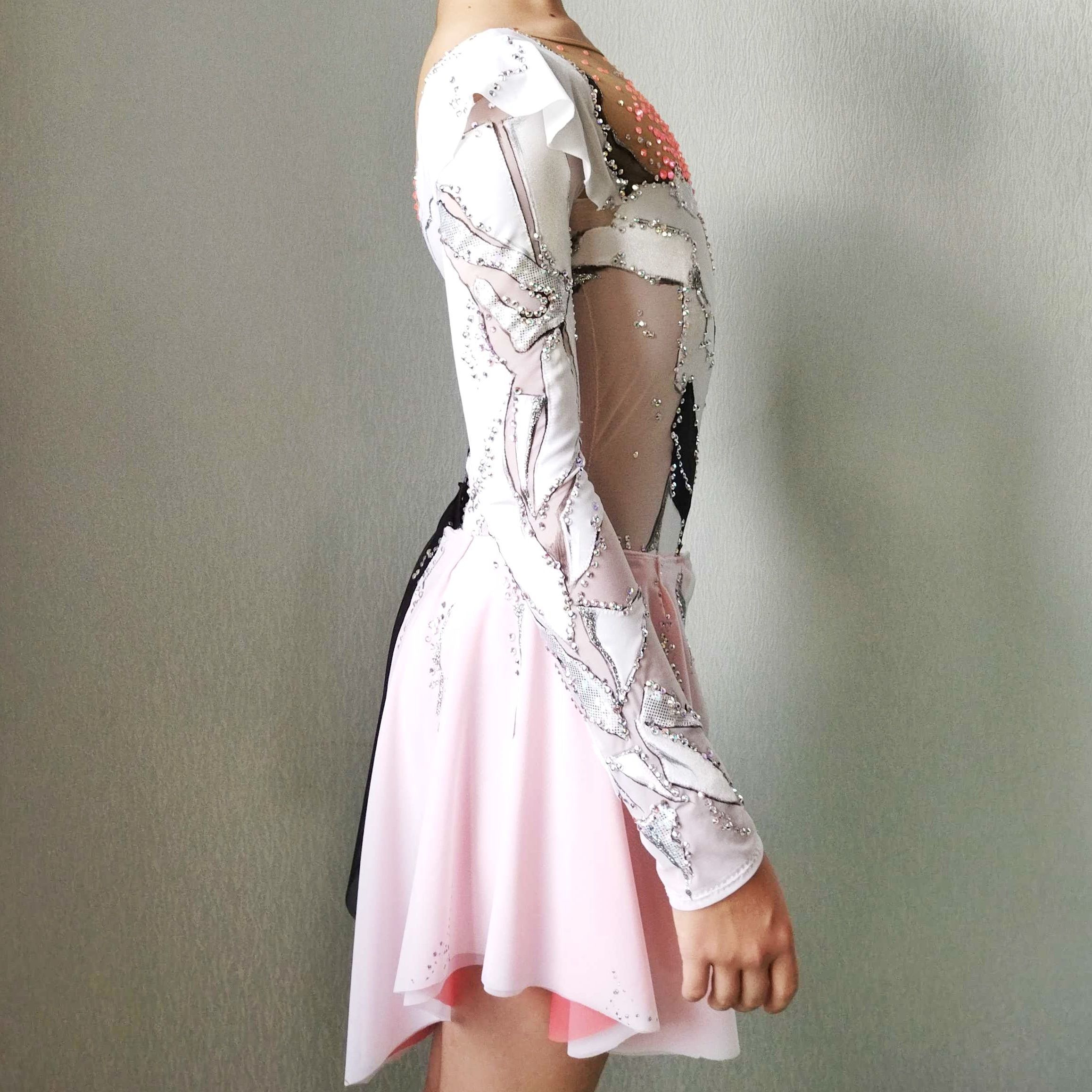 И этому есть объяснение - любой элемент изделия, любой дизайн, любой рисунок кардинально меняется при нанесении страз. Камнями можно проставить акценты, визуально поменять пропорции, да наконец просто украсить изделие. Смотришь на эти сверкающие, откуда то из глубины, кристаллы и невольно зачаровываешься. Это не просто блеск и сияние, это настоящая магия камней. В честь этой магии я и дала имя конкурсному купальнику.