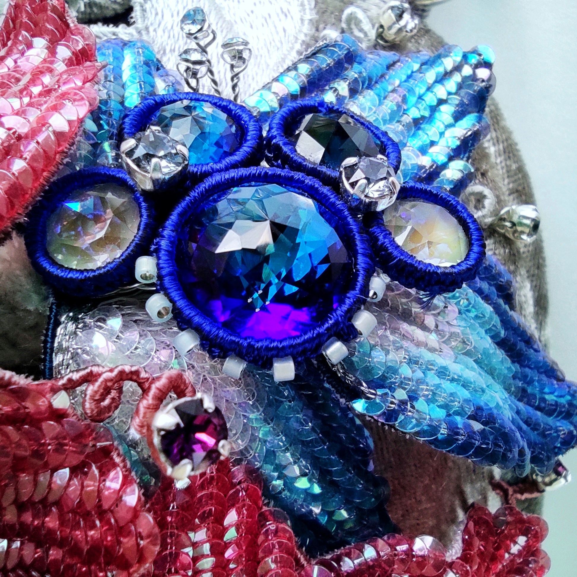 На обратной стороне сумочки спрятан секретик в виде бабочки, выполненной также в технике люневильской вышивки.