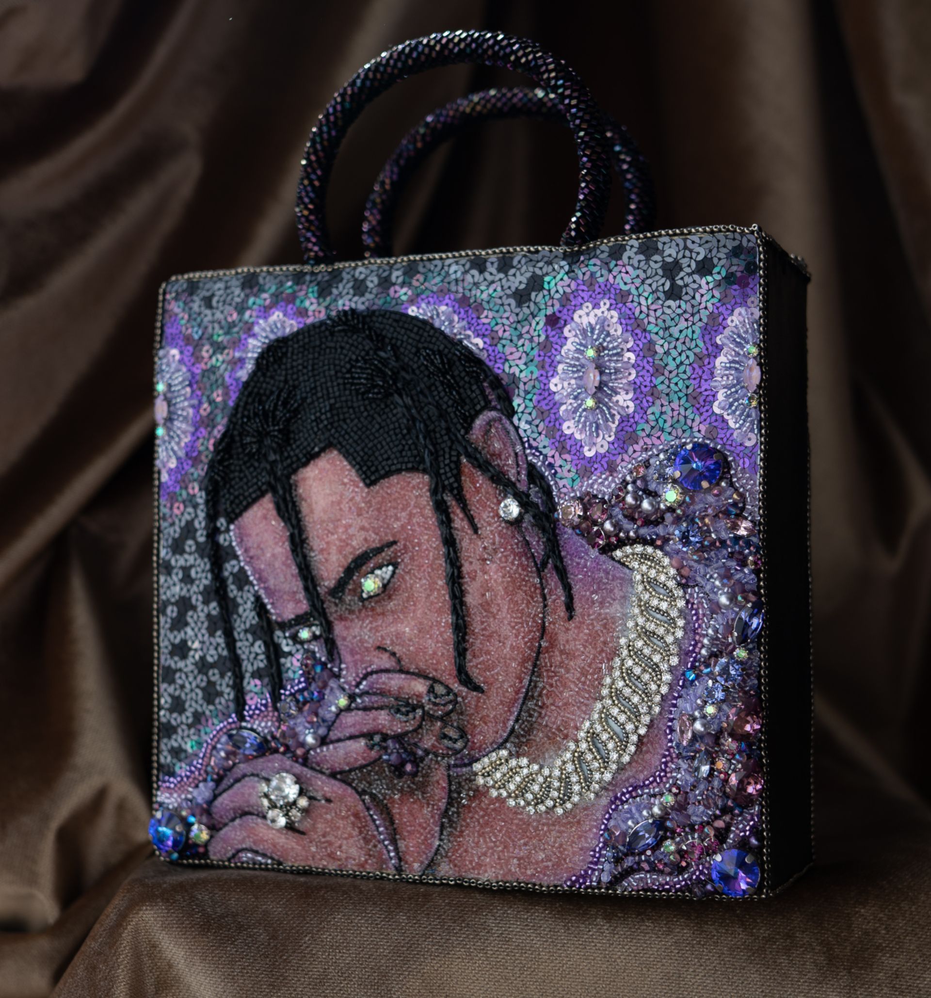 Любовь к кристаллам порождает необычайные сочетания и симбиозы! Каждый день мы наблюдаем рождения множества звёзд и кумиров! Звёзды загораются в блеске софитов и кристаллов ! В поисках вдохновения для своей работы  я окунулась в современную pop и rap культуру, где любовь к кристаллам является культом и отражением успеха ! Наиболее ярко горит звезда Travis Scot . Кумир сотен миллионов. Travis привлекает меня своим уникальным стилем ! Именно он делает акцент на множество бриллиантов и кристаллов , одевая из на обнаженное тело ! В центре внимания только любовь к кристаллам и сам артист !