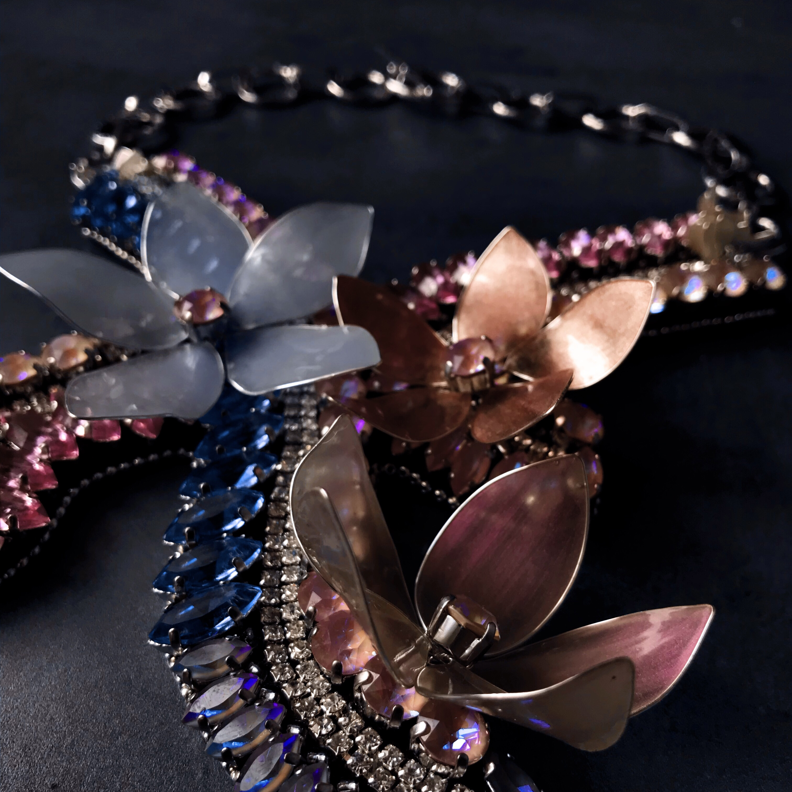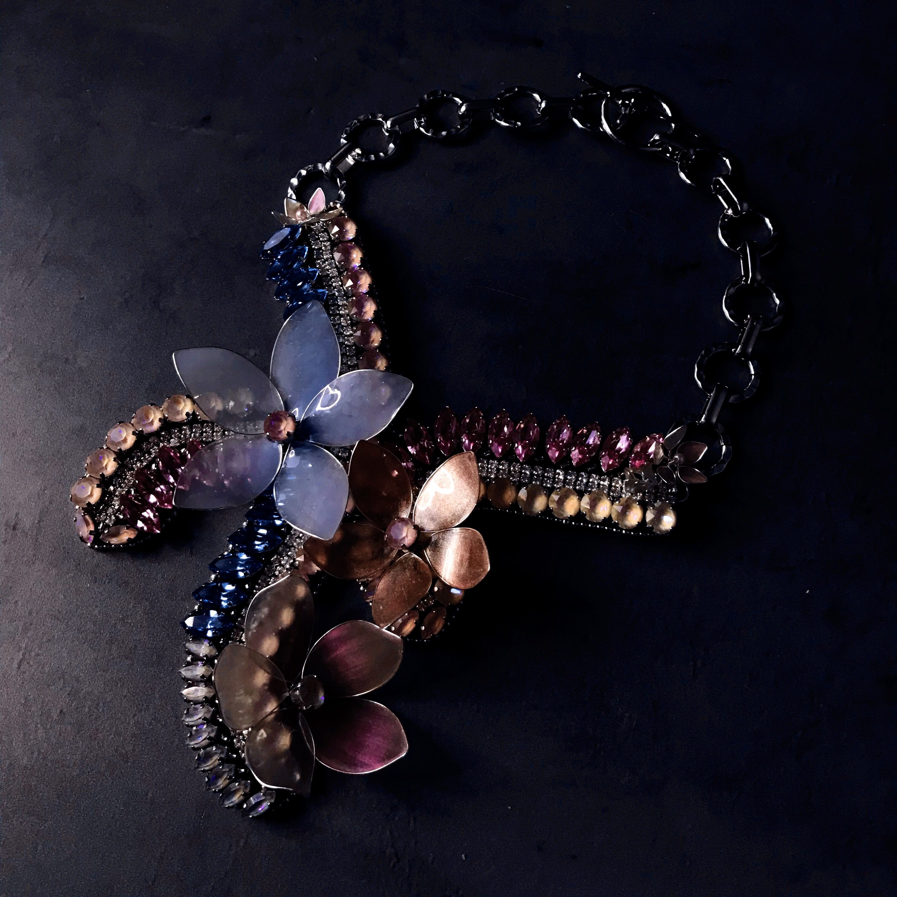 Идеей создания этого колье я обязана последней коллекции Сваровски. Увидев цветовую палитру, в голове почти сразу возник образ утренней зари.