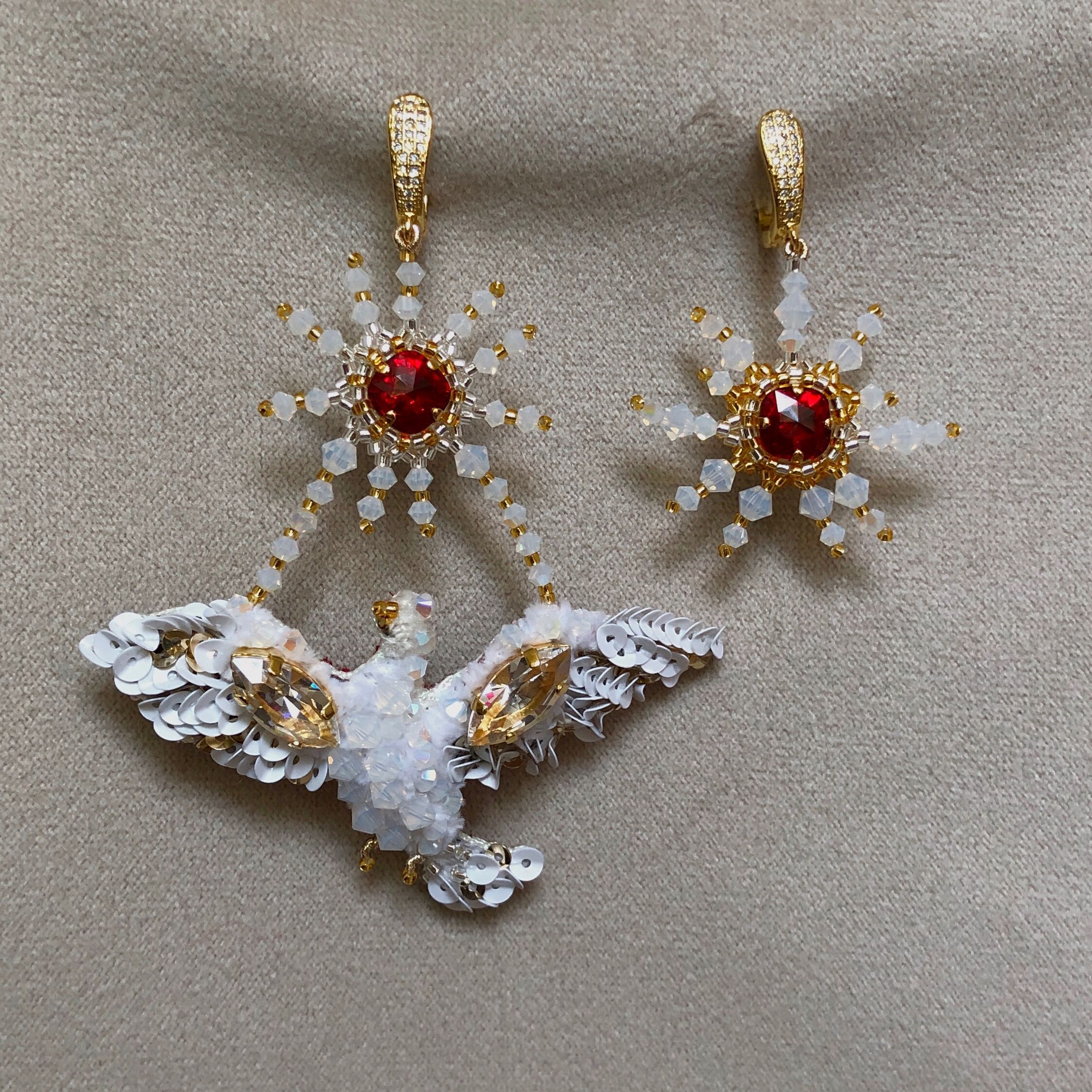 Тема конкурса "Crystal Love" в моем исполнении зазвучала плененной белой птицей, застывшей под кристальным солнцем и мечтающей о свободном полете. Работая над эскизом, выплетая и вышивая элементы конкурсной работы я слушала каверы на песню ДДТ "Песня о свободе", которая во многом и вдохновила меня на создание именно этой работы. Очаровывающий блеск кристаллов, который манит и пленяет.