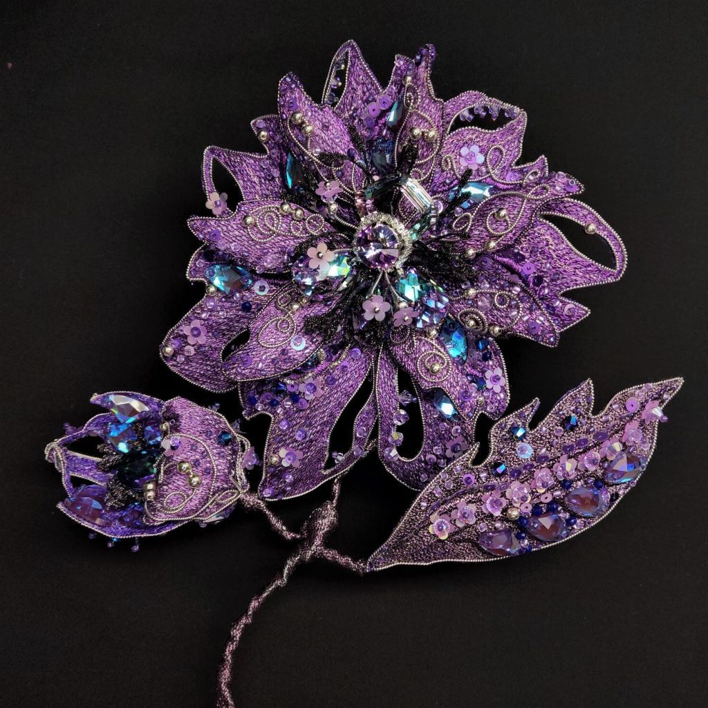 Брошь размеры - 17х14 см, выполнена в техники вышивки металлизированными нитями.