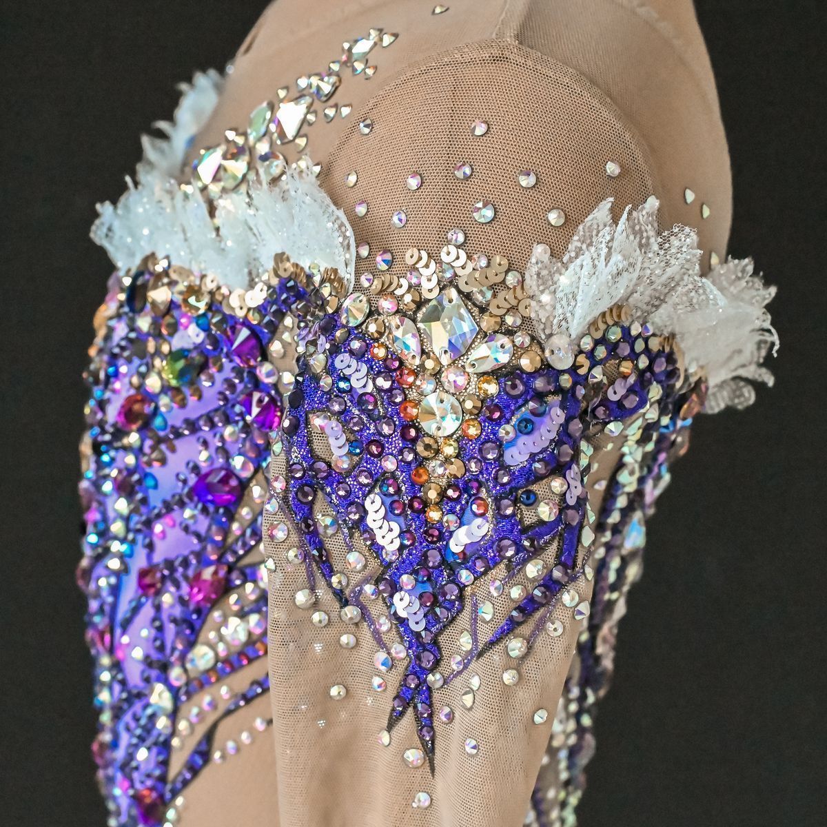 Купальник выполнен в любимой цветовой гамме императрицы. Александра Федоровна предпочитала платья пастельных, сиреневых и лиловых оттенков. Эти цвета доминировали и при выборе украшений (одни из излюбленных были аметисты) и при оформлении интерьера.