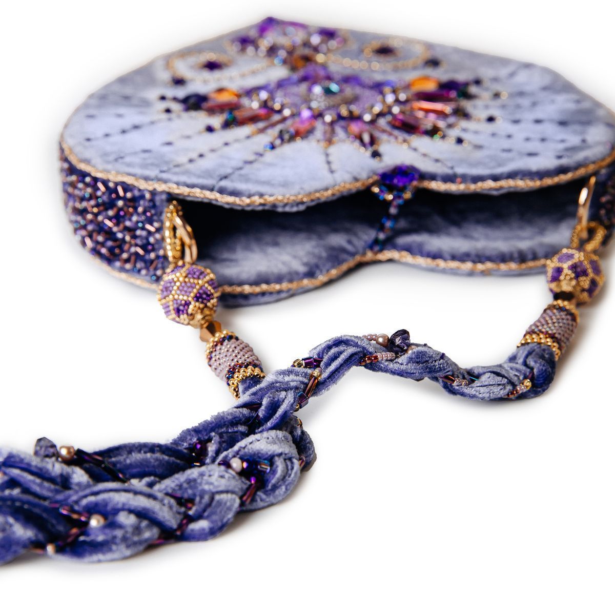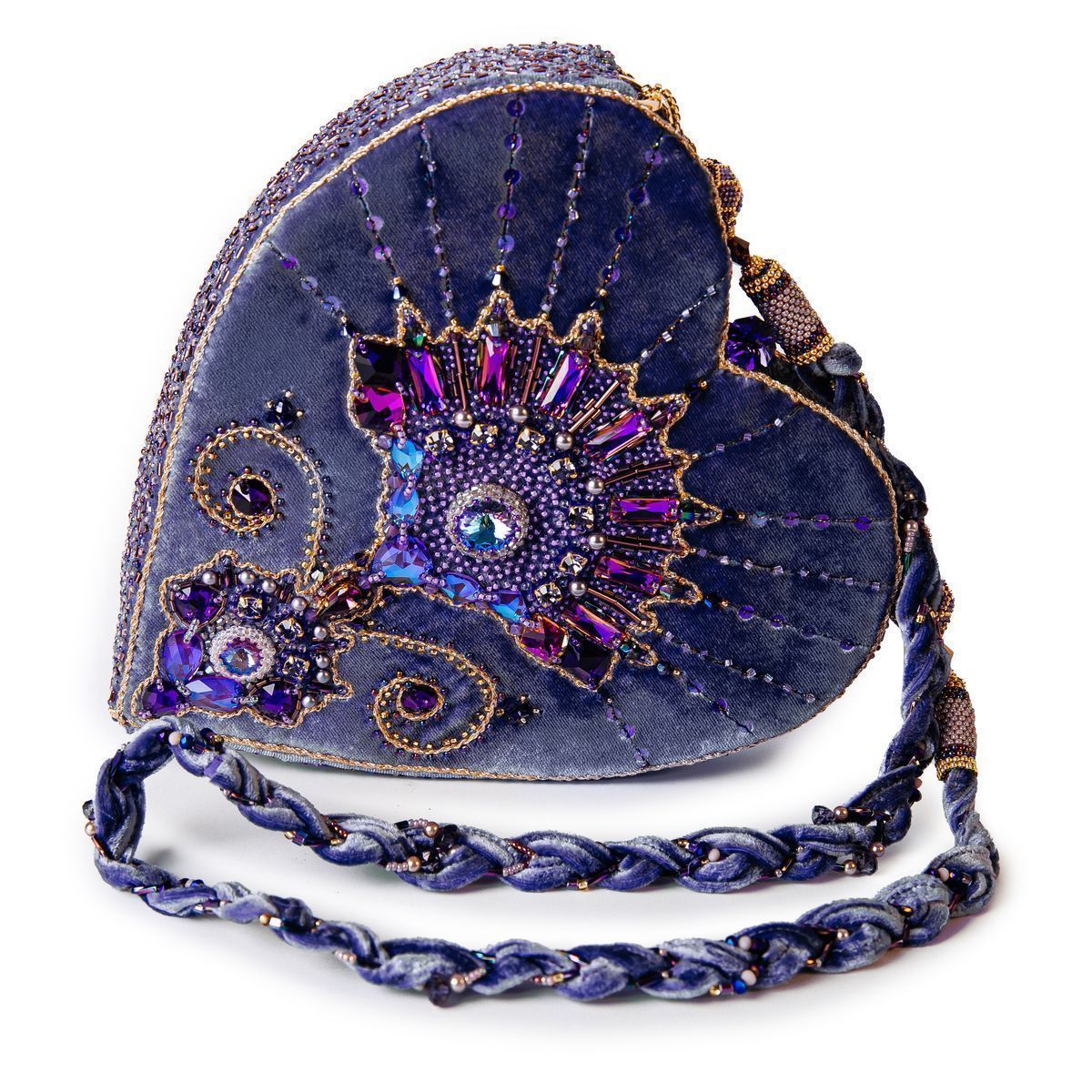 В сумочке «.evoli в моём сердце» кристаллы от .evoli собрались в один благоухающий цветок, который расцвёл на бархатном сердце, чтобы донести все нюансы цветовых оттенков лавандовых полей, запахи множества мелких цветочков сирени и тепло сказочного благоухания роз.