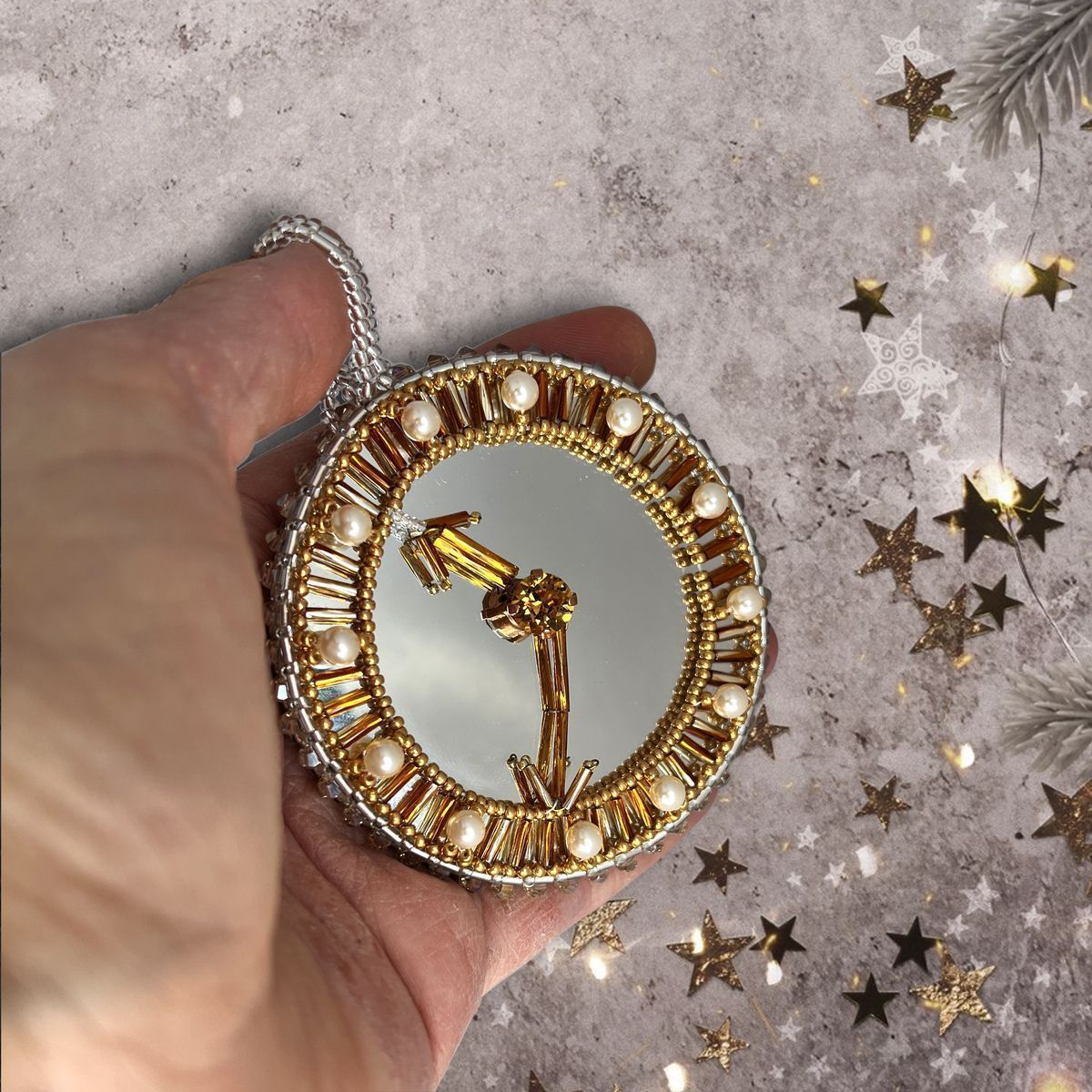Елочная игрушка "Зеркальные часы или Скоро Новый год"