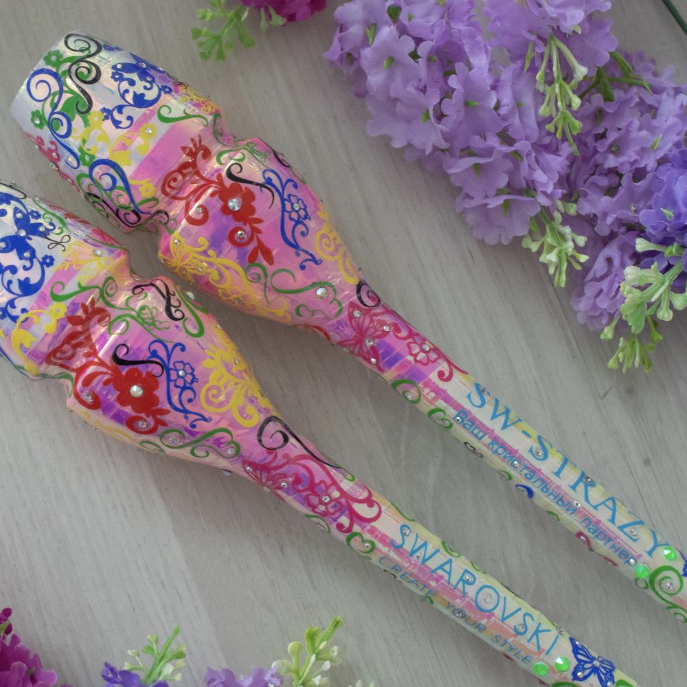 А Мода неукоснительно идёт вперёд, снова подсказывая нам: «Время сиять!» И теперь всё чаще встречаются в руках гимнасток предметы, от которых разбегаются по ковру те самые магические искорки непревзойденных кристаллов!