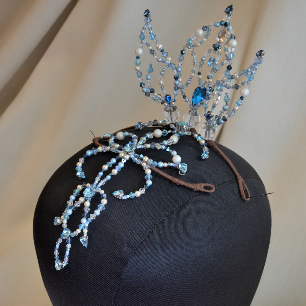 Мне было важно, внести новые грани: сделать талисман, наполненный символикой. Поэтому-жемчуг и аквамарин. Никто не делает балетные диадемы, по которым можно читать историю и душу, когда материал имеет сакральный смысл.