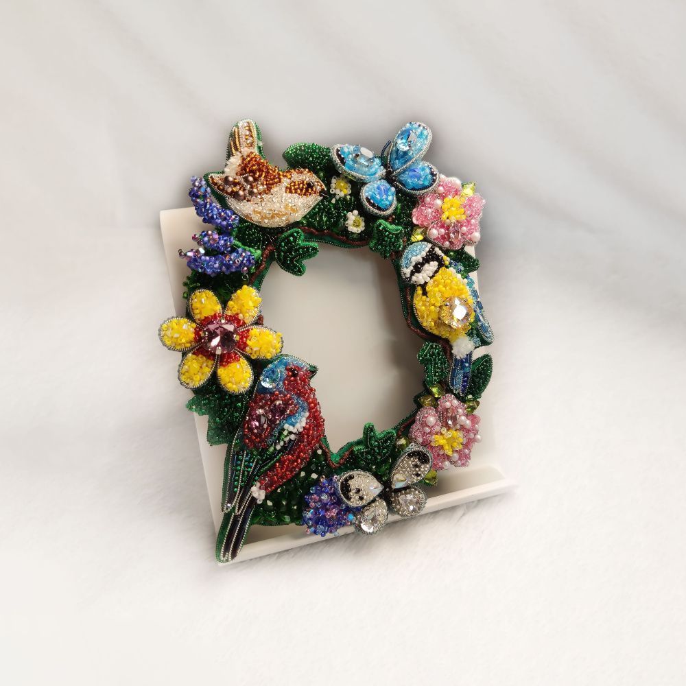 Элементы броши расположены по кругу – символу бесконечности. Данный символ показывает бесконечность развития, жизни и времени. Цветы, птицы и бабочки при создании композиции выбраны не случайно. Розовые первоцветы расцветают первыми, предсказывая приход весны, цветы сирени символизируют рассвет любви, бабочка – душу, бессмертие и возрождение. Птица же – знак свободы и счастья.
