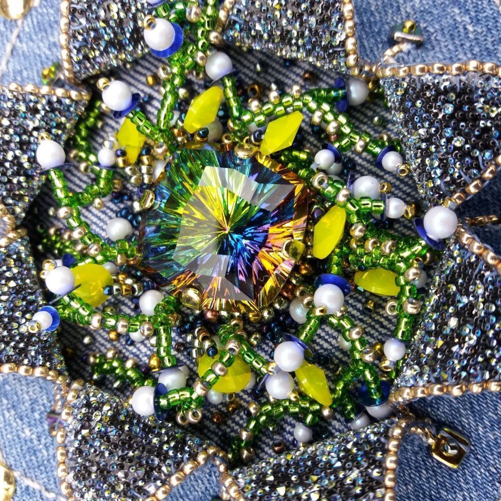 На столе лежали кристаллы и жемчуг Swarovski из новой коллекции Весна / Лето 2021«Время сиять» и дожидались моего вдохновения. Неподалеку лежала моя старая любимая джинсовая куртка.