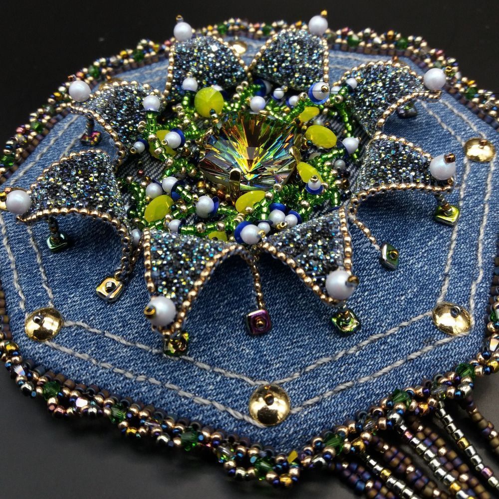 Три недели экспериментов с формой, цветом, различными техниками рукоделия и, наконец, родилась необычная и оригинальная сияющая брошь.