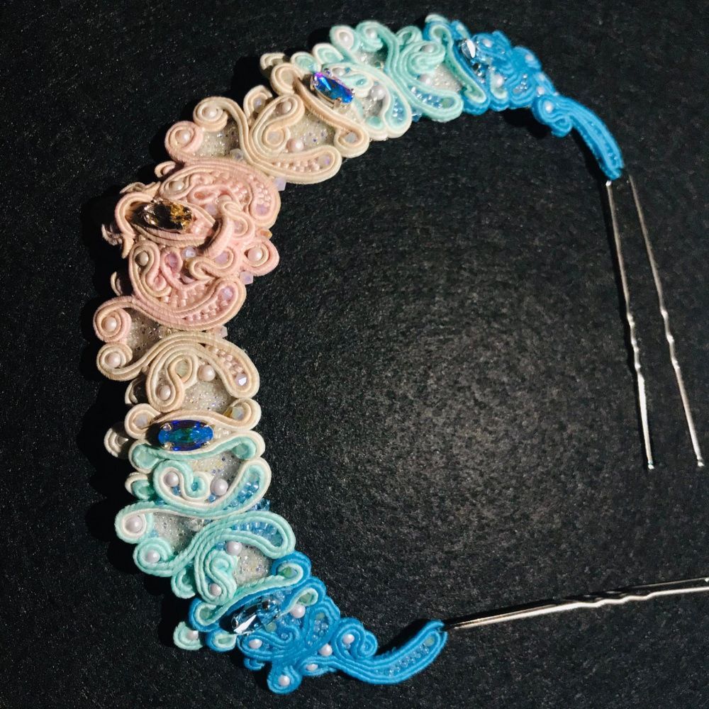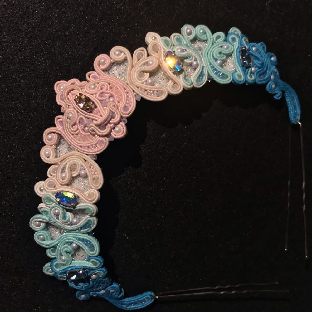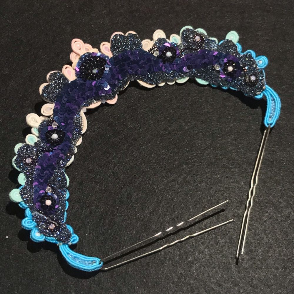 Моя работа представляет собой сутажную мини диадему с двумя сторонами.