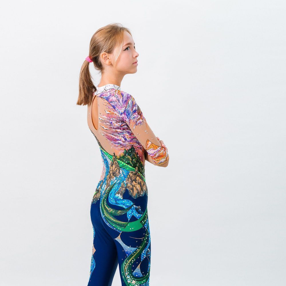 Этот костюм вдохновлён природой. Ее нельзя не любить, ею нельзя не восхищаться. Ведь природа очень многогранна и разнообразна . Природа - все то, что нас окружает. Это растения, животные, вода, воздух, горные породы. На земле множество видов растений, животных и все они тесно связаны между собой. Это и захотелось передать создавая костюм. На каждой стороне изображены разные грани удивительной природы. Спереди, сверху вы увидите коня на краю скалы и темно зелёный густой лес, чуть выше могучий, властный орёл взмылся вверх в поисках новой жертвы. По переднему рукаву раскинулись грозы и знойные дожди, а переходя по плечу на спину мы видим мирное и спокойное небо, по которому беззаботно летя белоснежные чайки. Спускаясь ниже мы видим воду яро бьющуюся о скалы. Вода спускается тонкой рекой вниз, оказываясь в таинственной и тёмной пещере. От новых сочетаний и новых граней природы которые можно увидеть в жизни захватывает дух. Именно эти эмоции можно получить увидев данный костюм . Всмотрись и природа откроется тебе с новой стороны.