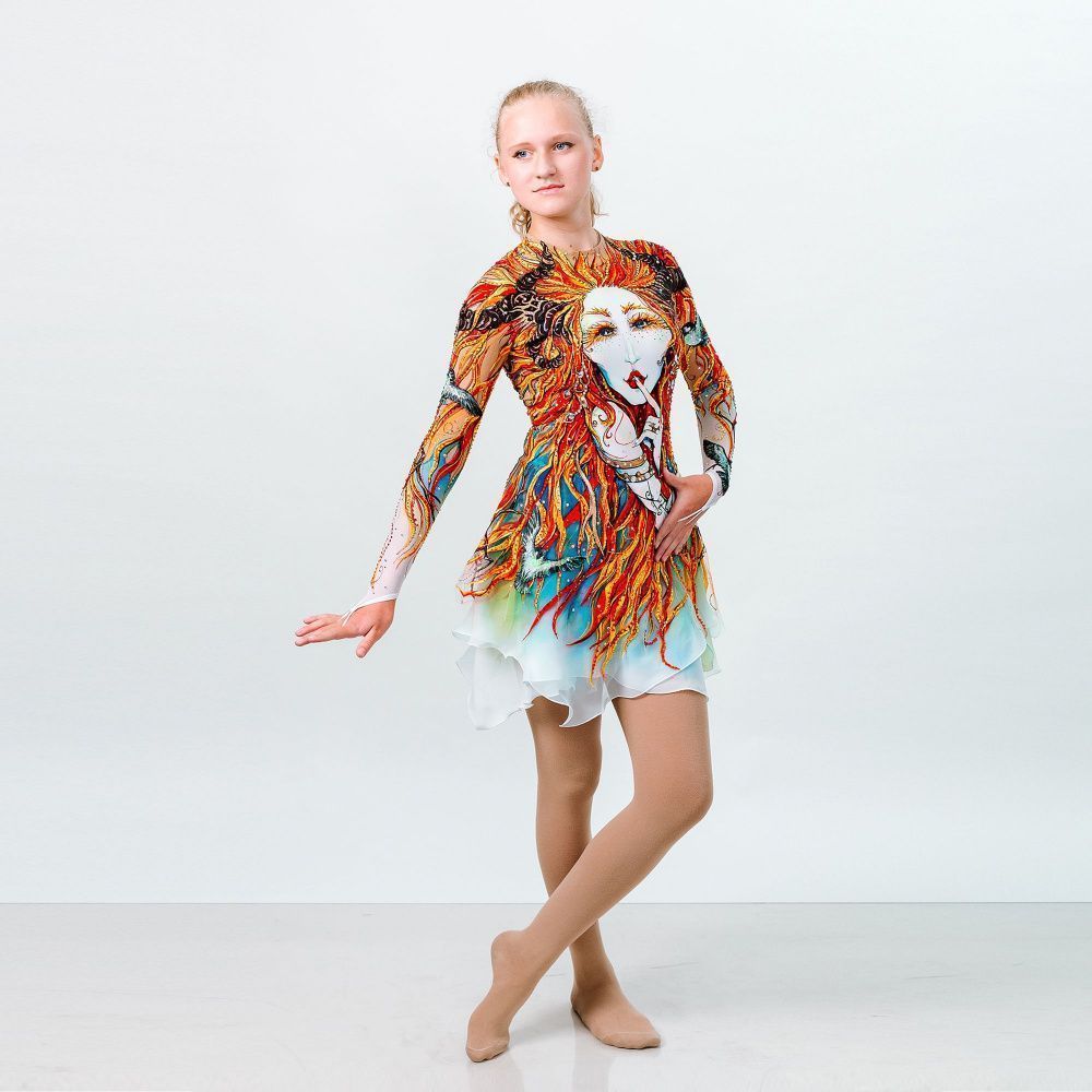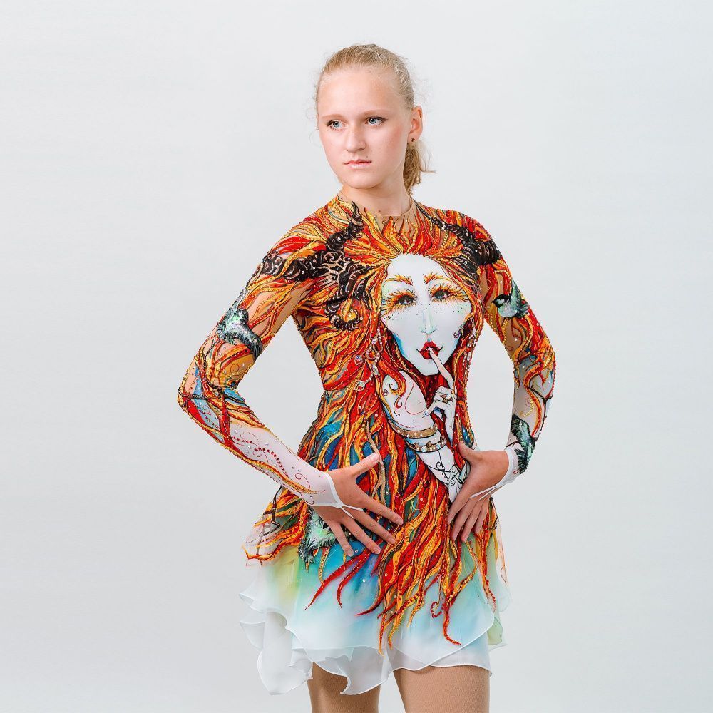 Этот костюм был вдохновлён лесом и лесными существам. Здесь вы можете увидеть лесную Дриаду, защитницу и охранницу леса. Её характерные черты это рога, напоминающие толстые ветви старого, сухого дерева. Рядом с Дриадами всегда очень много замечательных, маленьких птичек. Они являются её главными помощниками. Помощники Дриад отличаются от обычных птиц. Главная их особенность оперение, на фоне серых и блёклых крыльев выделяются ярко зелёные перышки, что бы никто не спутал их с обычными птицами. Обязанности Дриад очень важны для леса и его жителей. Их жизнь многогранна. В разное время года у хранительницы леса меняются обязанности. Зимой она укутывает всех зверей, растения и деревья тёплым белоснежным одеялом. Если вы когда ни будь были в зимнем ночном лесу, то наверняка слышали тихий и успокаивающий звук ветра . Это Дриада поёт колыбель зверям. Затем наступает Весна -замечательное время рождения и цветения. Распускаются цветы, набухают почки и на свет появляются прекрасные детёныши. Здесь изображена Дриада поздней осень. В это время лес затихает, животные после долгого сбора запасов готовятся к спячке . В это время в лесу тихо и спокойно.