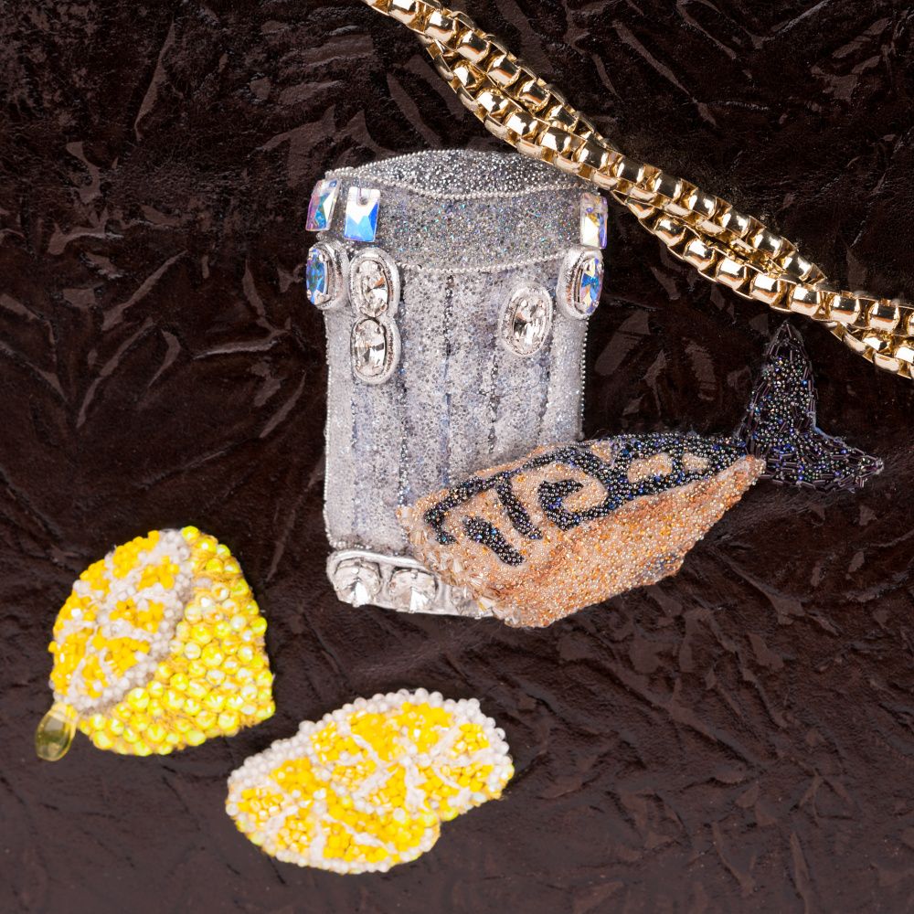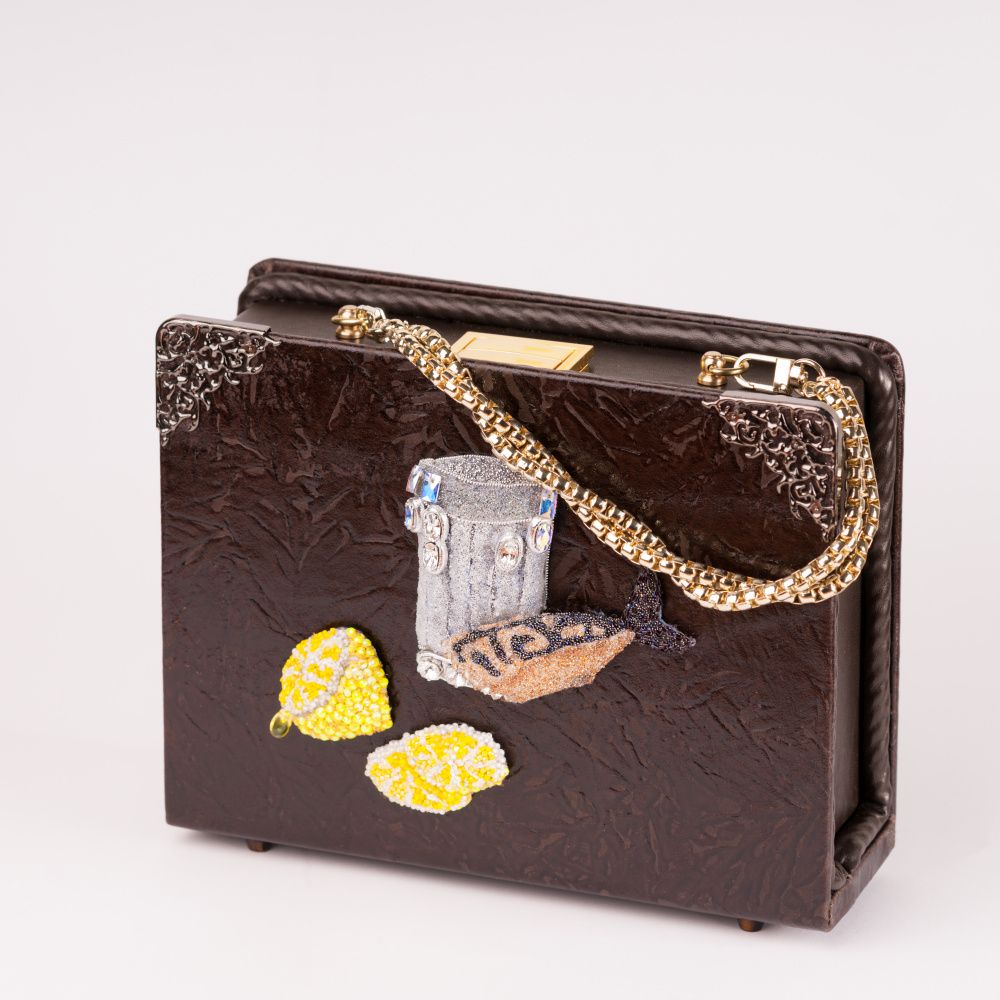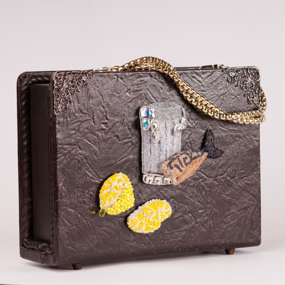И даже те предметы (граненый стакан, лимон и скумбрия) , что я сделала на фасаде сумочки, меня не смутили. А ведь раньше я бы такого и не сделала (даже если бы пришло на ум). Так что для меня это прежде всего раскрытие себя самой, выход из "кокона". Это очень волнительно и, оказывается, интересно!