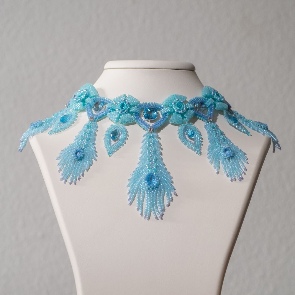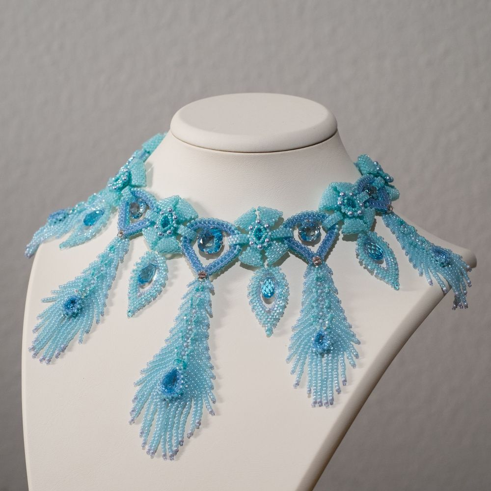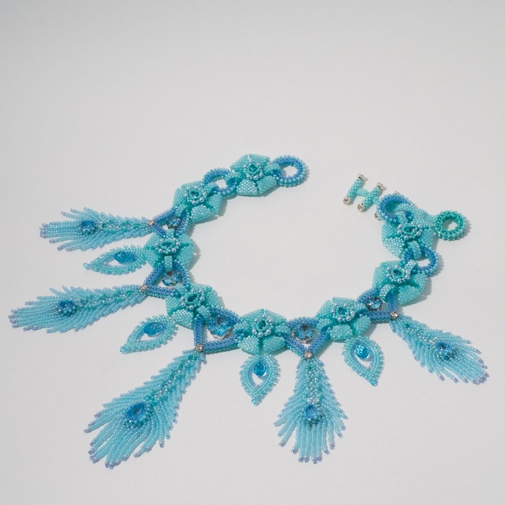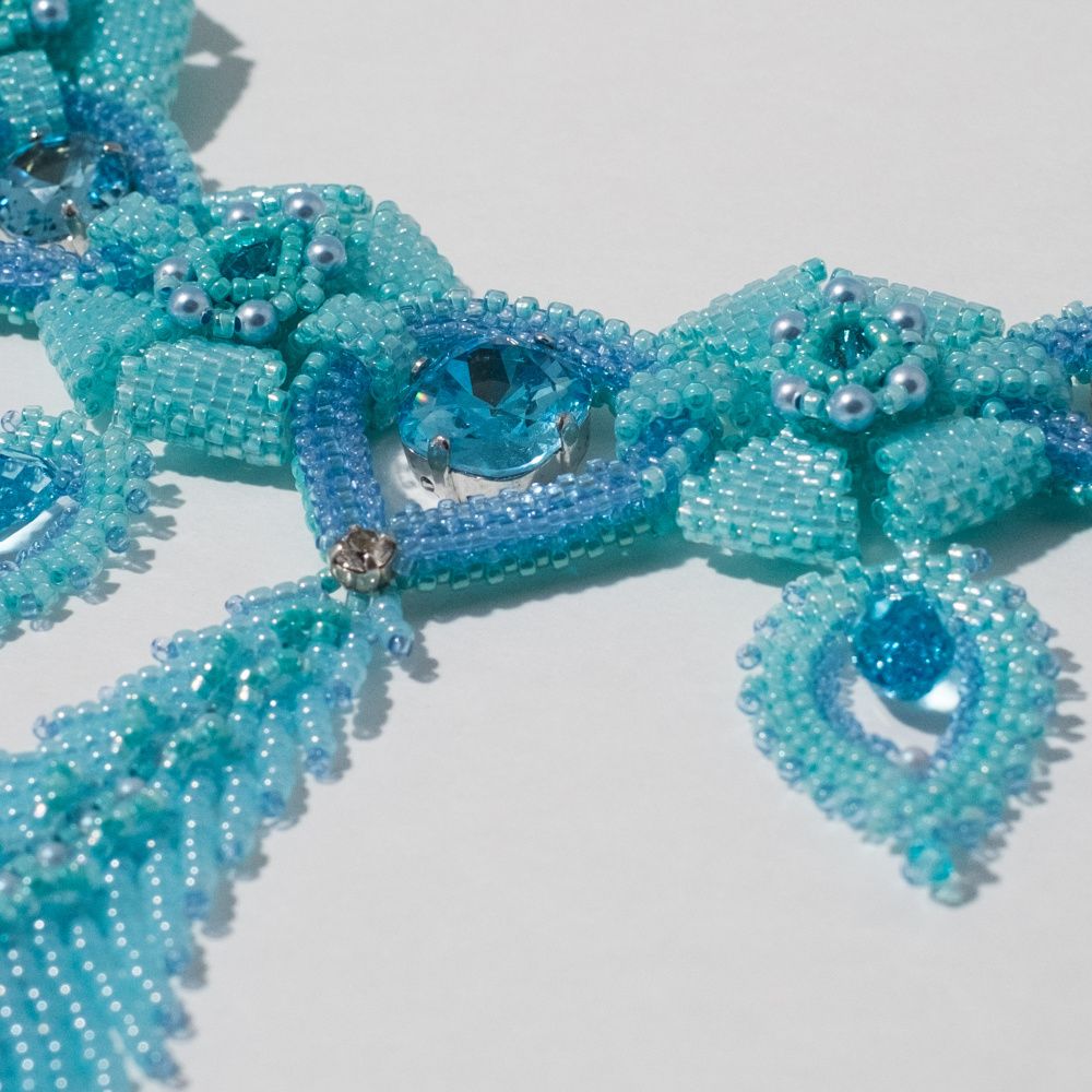 В своей работе мне хотелось показать красоту цвета Aquamarine Ignite, его легкость и воздушность. Его восхитительное прозрачное сияние, словно пронизанное насквозь светом — как дождь, который идет в ясную погоду, не замечая палящего солнца.