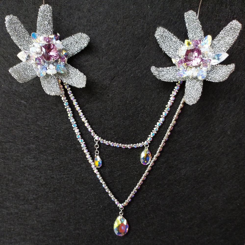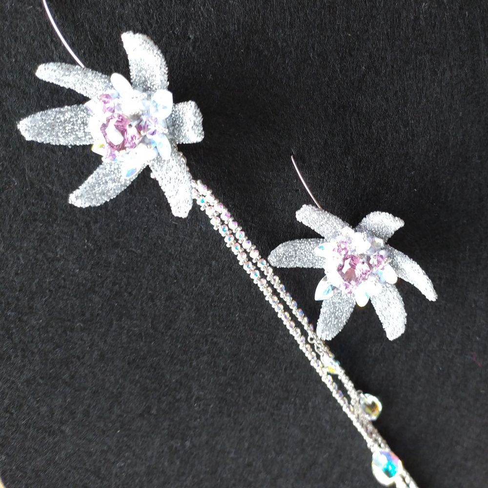 Вот она, целая Вселенная, со звездами, далекими и близкими. Серьги-звезды будто повисли в воздухе за счет швенз-крючков. Как Млечный путь – небосвод, так соединяющие две серьги цепи из Crystal Mesh обнимают шею. И вдруг – летит звезда. Смотри, какой яркий след тянется за ней. Ты знаешь, что делать, – скорее загадай желание! Шейное украшение легко трансформируется в струящуюся подвеску одной «звезды». Цвет Iris - символизирует космос, нечто мистическое.