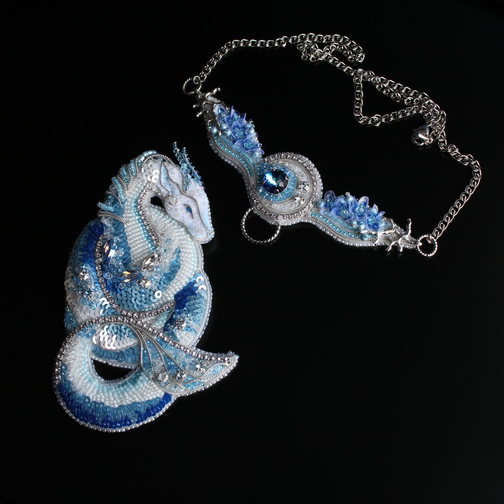 Для меня важно, чтобы этот дракон стал вдохновением и верным помощником для его обладателя. Поэтому колье предусматривает несколько вариантов ношения.Оно состоит из двух основных элементов: брошь в виде фигуры дракона и ожерелья с луной.Эти украшения можно носить вместе или, каждое отдельно, как самостоятельный аксессуар.