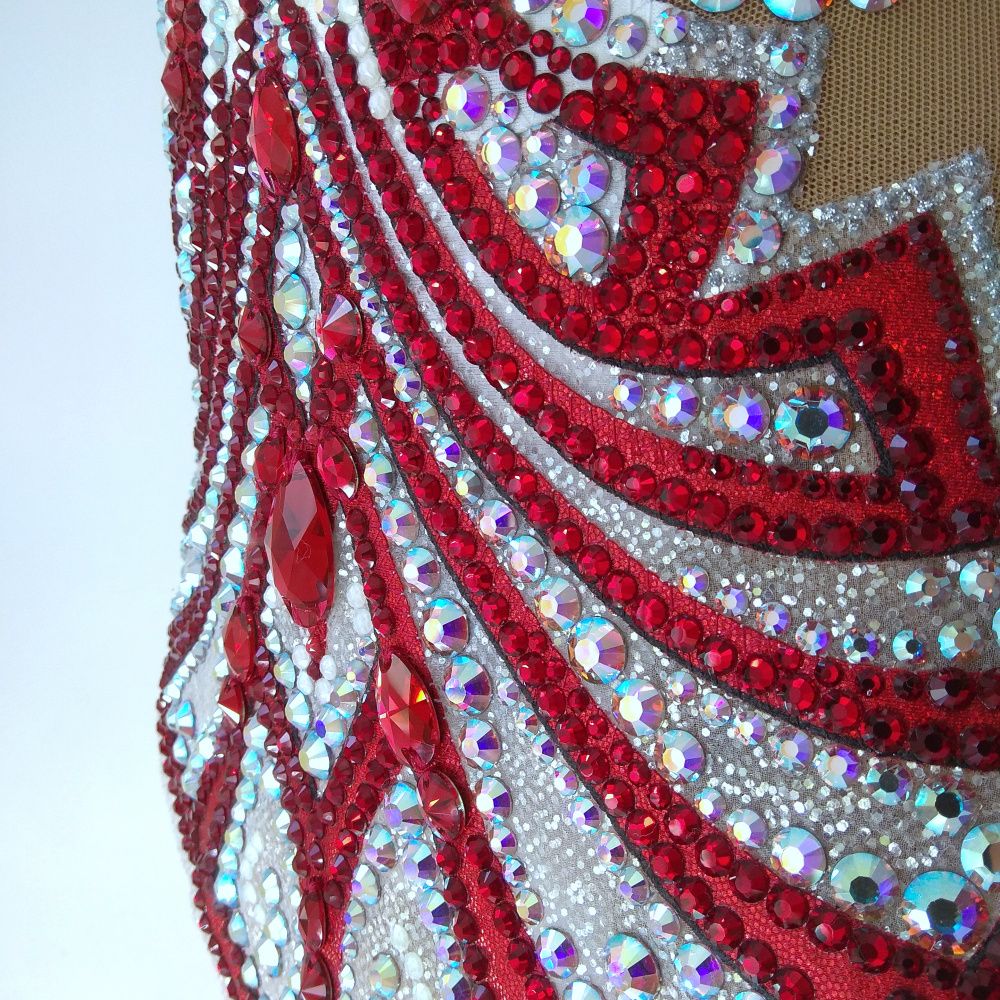 Купальник выполнен по мотивам японской мифологии. Центральным объектом является морда-маска белоснежной хрустальной лисы в кимоно. Считается, что мех девятихвостой лисы кицунэ серебристый, белый.