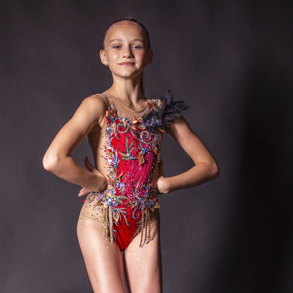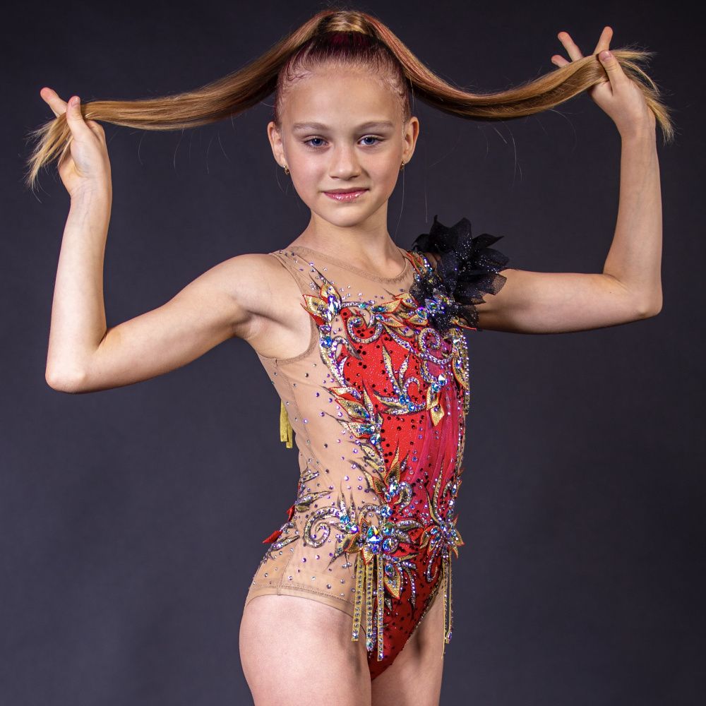 Классическое сочетание красно - черных оттенков, обрамленное шиком золотых вензелей, парящей легкостью объемных элементов и невесомой драпировки, ограненное многогранным блеском и бесконечным мерцанием россыпью камней Сваровски, приобретает совершенно иной неземной высший смысл, особенно актуальный в новых условиях современной жизни, суеты и неуверенности в завтрашнем дне в период пандемии. Представляю Вашему вниманию в первую очередь образ уверенной в себе спортсменки, четко формулирующей и осознающей свою цель, даже самую несбыточную, и смело идущую к ней. В этом образе для нее нет препятствий суетного мира, ее глаза широко распахнуты, а душа и сознание готовы к вызовам и переменам! Она знает себе цену, гордится своими достижениями, но не задирает нос, идет легкой, красивой, уверенной походкой по бурлящей страстями жизни в новом образе, который для нее - успешной и ослепительной - как вторая кожа, как ее второе Я!