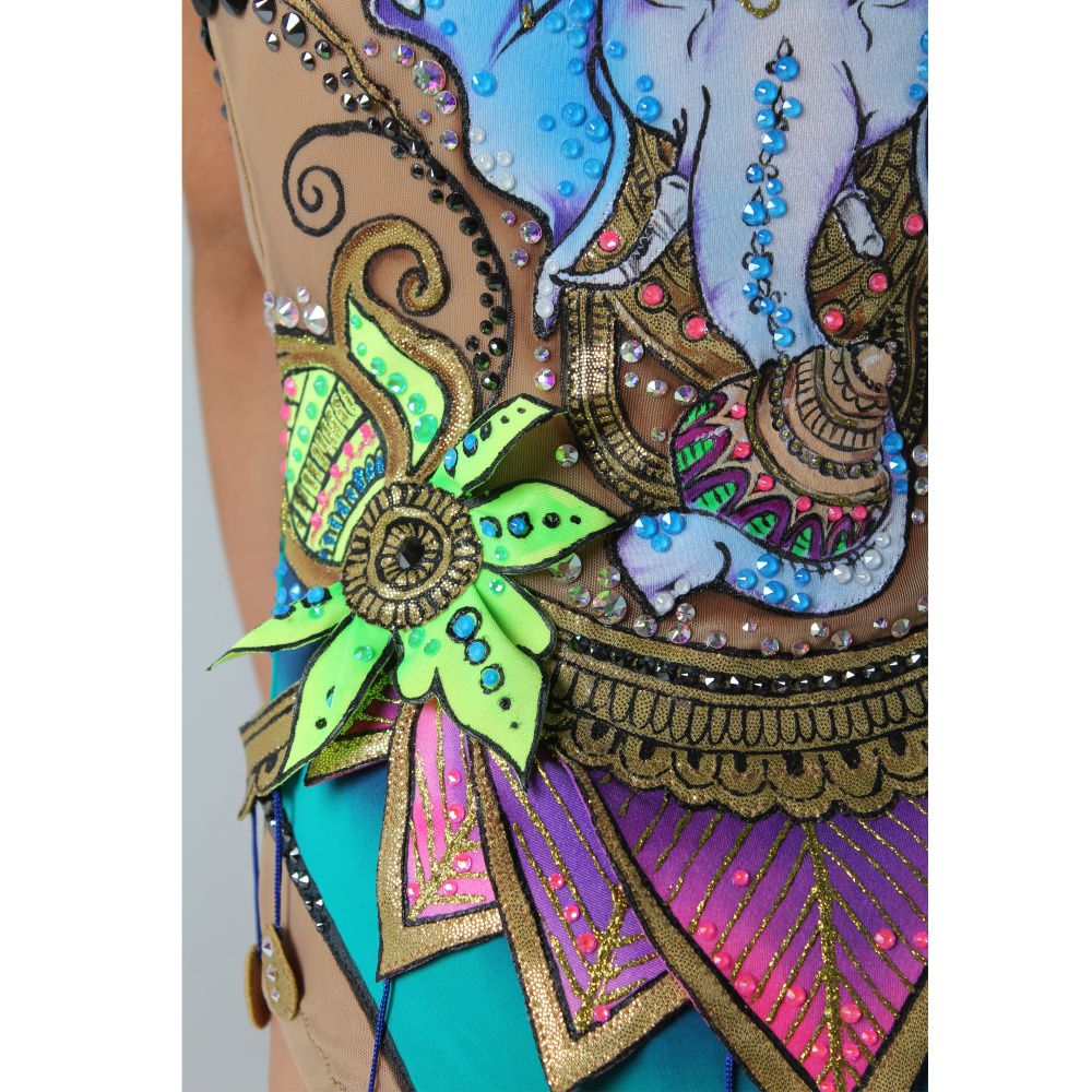 Все элементы костюма олицетворяют сияние творческого начала, гармонии, жизни и успеха. Подчеркнуть это помогают стразы Swarowski .