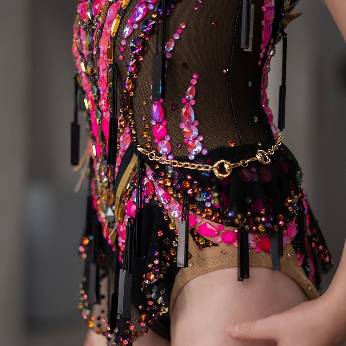 В работе используются итальянские пайетки и японский бисер. Дракон съемный, что делает купальник вариативным.