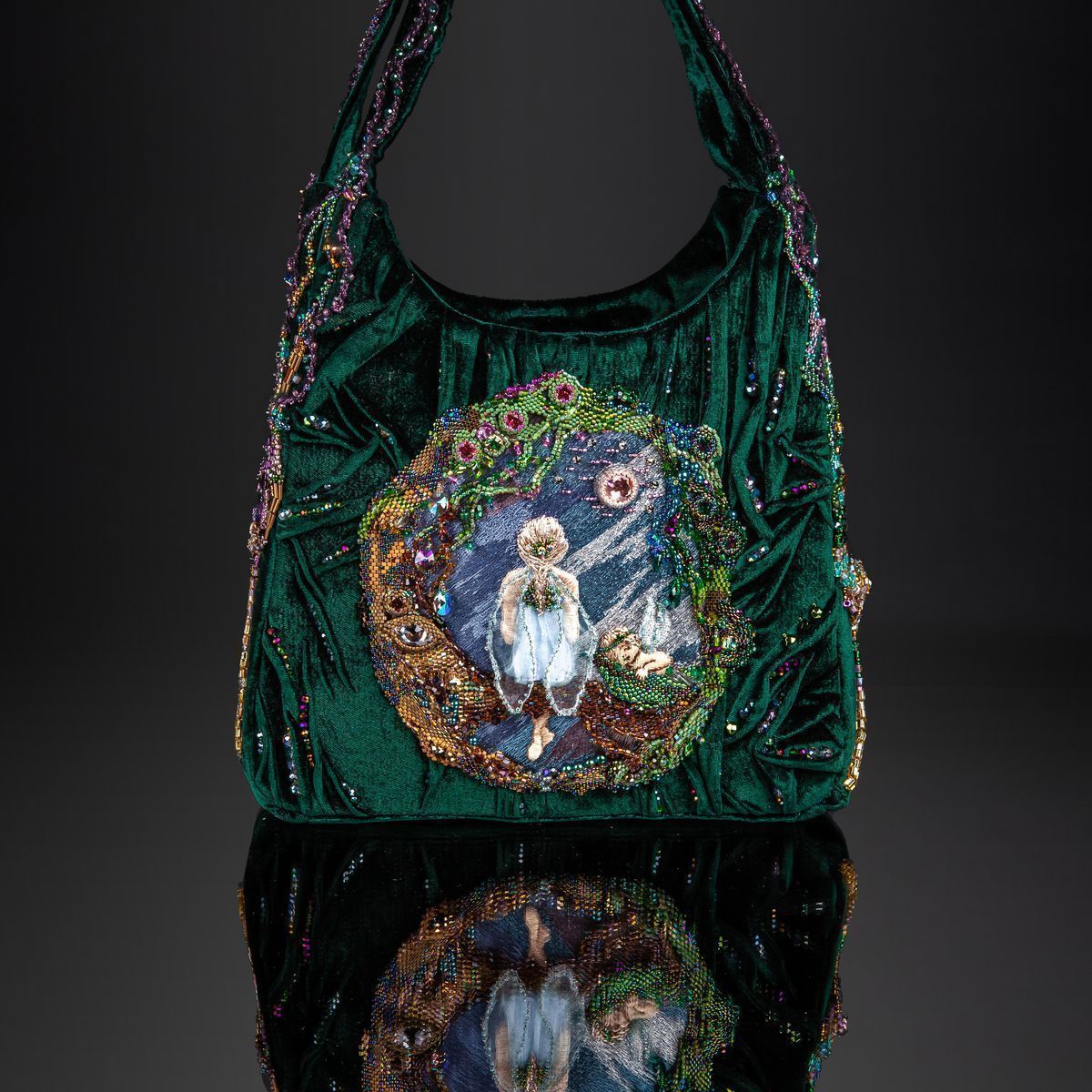 В дизайне своей сумочки хотела отразить загадочное и мистическое место в Зазеркалье, где можно встретить Фею. Фея - благожелательная волшебница, которая способна творить чудеса.