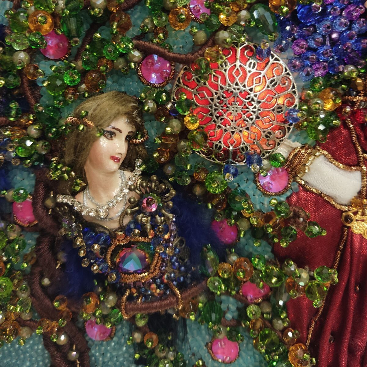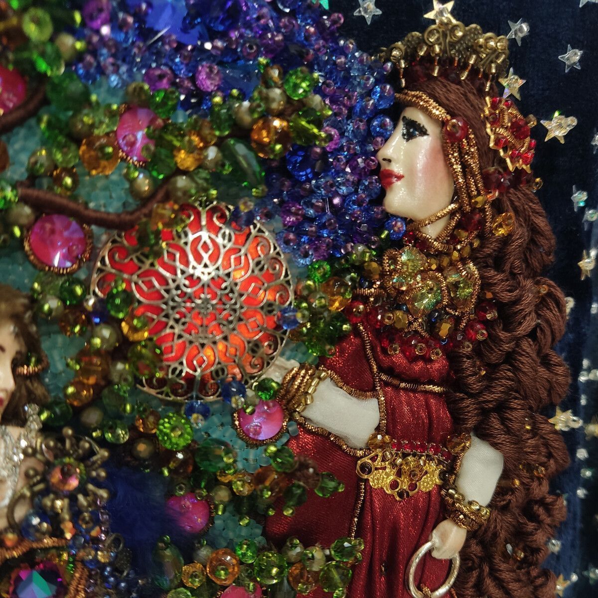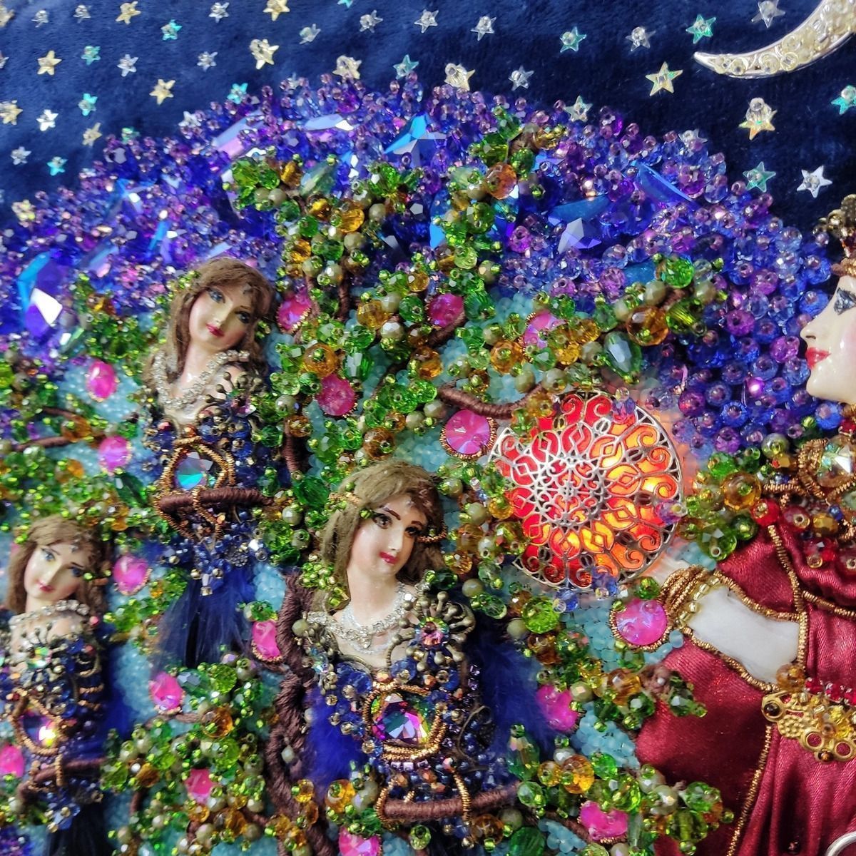 Хотелось изобразить  объёмную  вышитую "иллюстрацию".  Сумочка имеет блок питания и подсветку портала и лампы для ещё большей сказочности, праздничное настроение гарантировано. Увесистая 900 грамм.