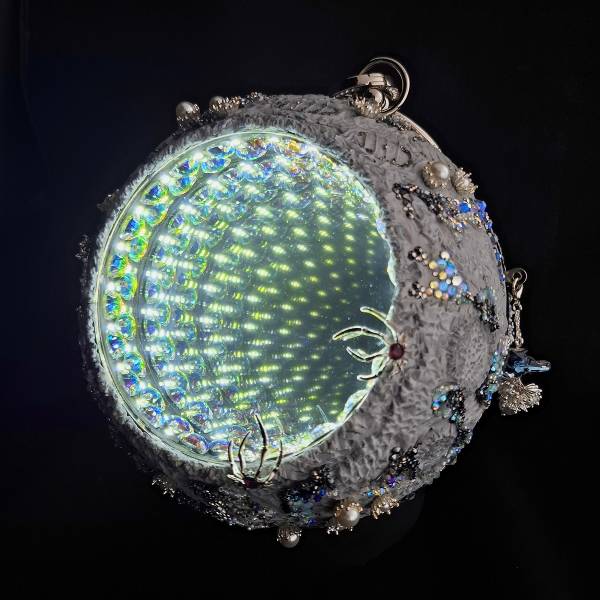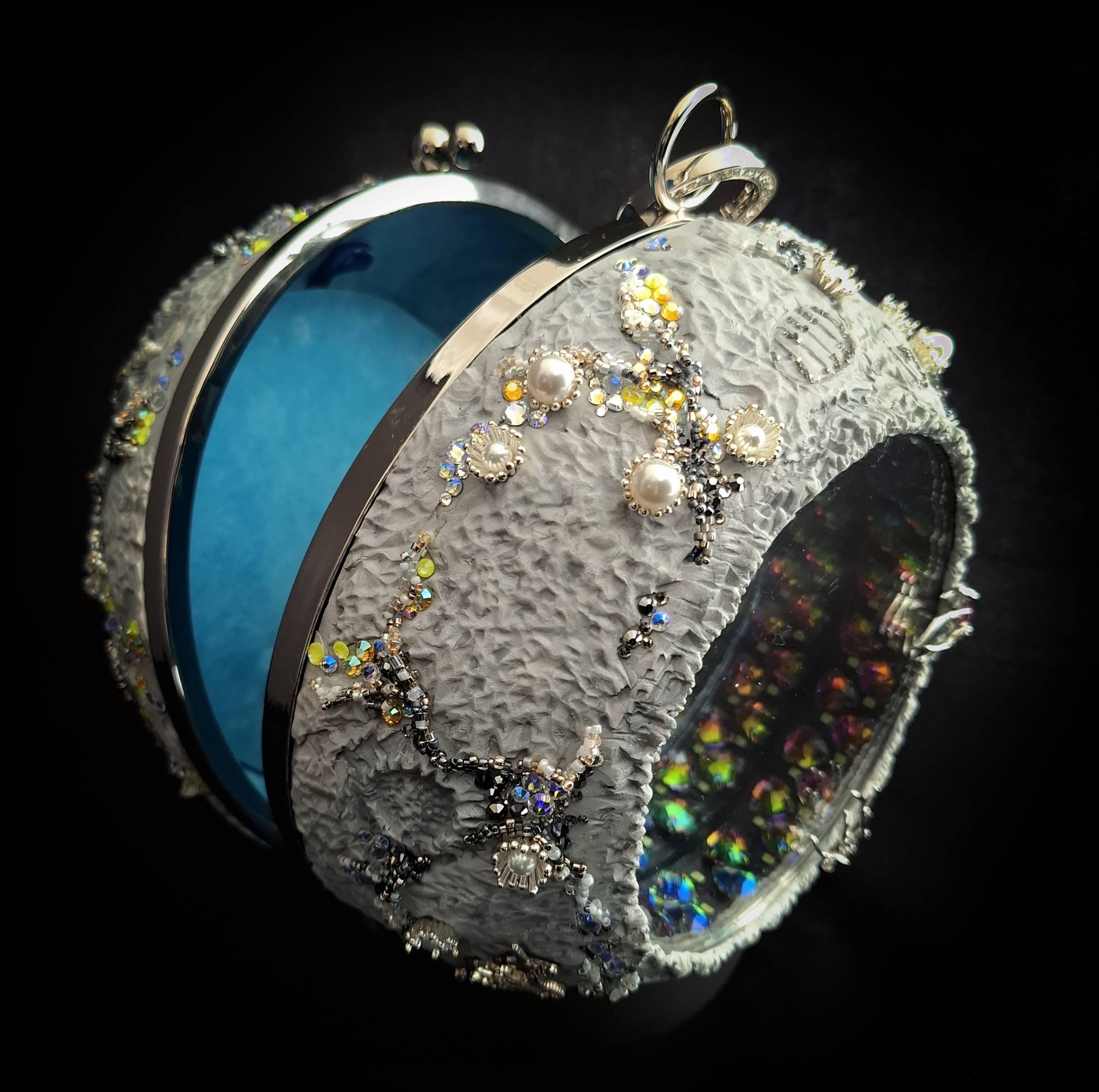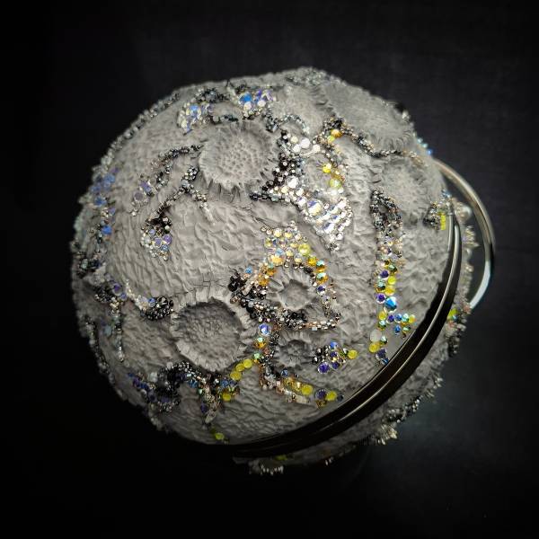 Луны вылеплена из полимерной глины, частично вышита бисером и инкрустирована