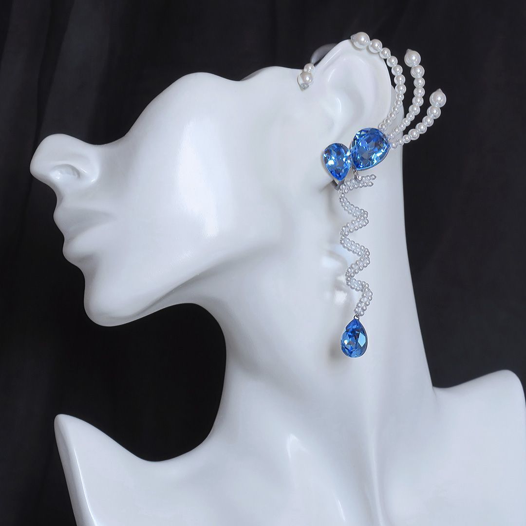 Украшение парное, выполнено в виде кафф. Их конфигурация полностью разработана и создана с нуля собственноручно. Все элементы собраны в единую монолитную структуру, за исключением подвижного подвеса, который добавляет небольшой игривости запечатлённому образу.