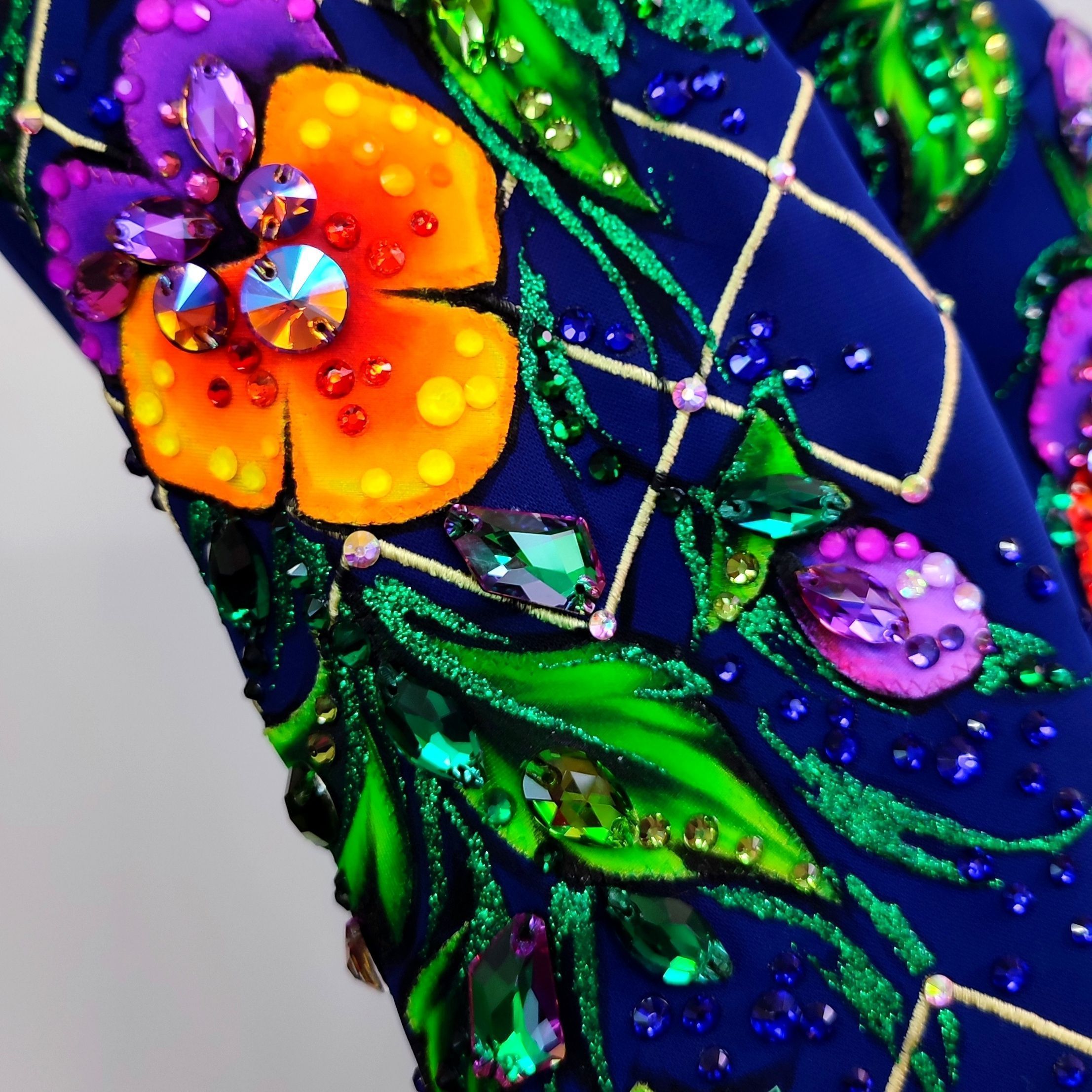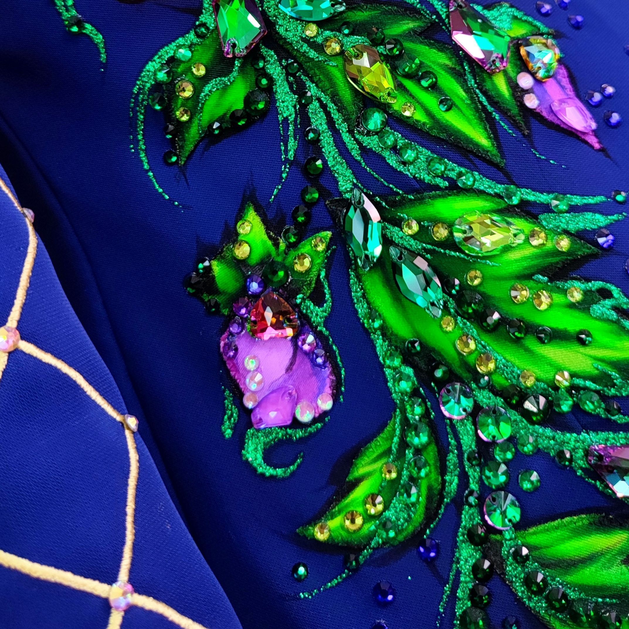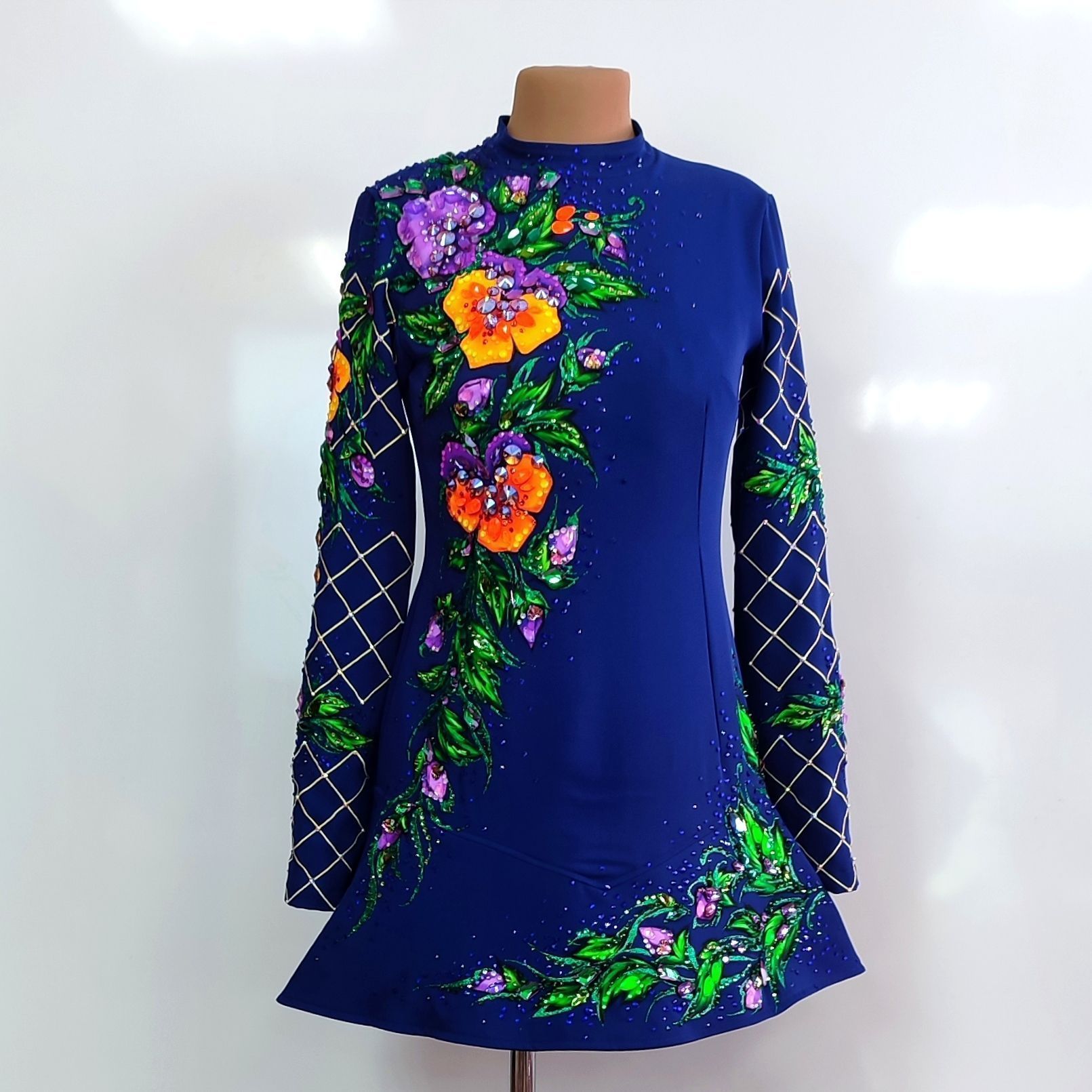 Но в наше время исполнитель ирландского танца вправе вложить в свой костюм частичку своей души и заявить о себе, и наша героиня Анна воспользовалась этим, реализовав с помощью нашей мастерской костюм "Анютины глазки'.