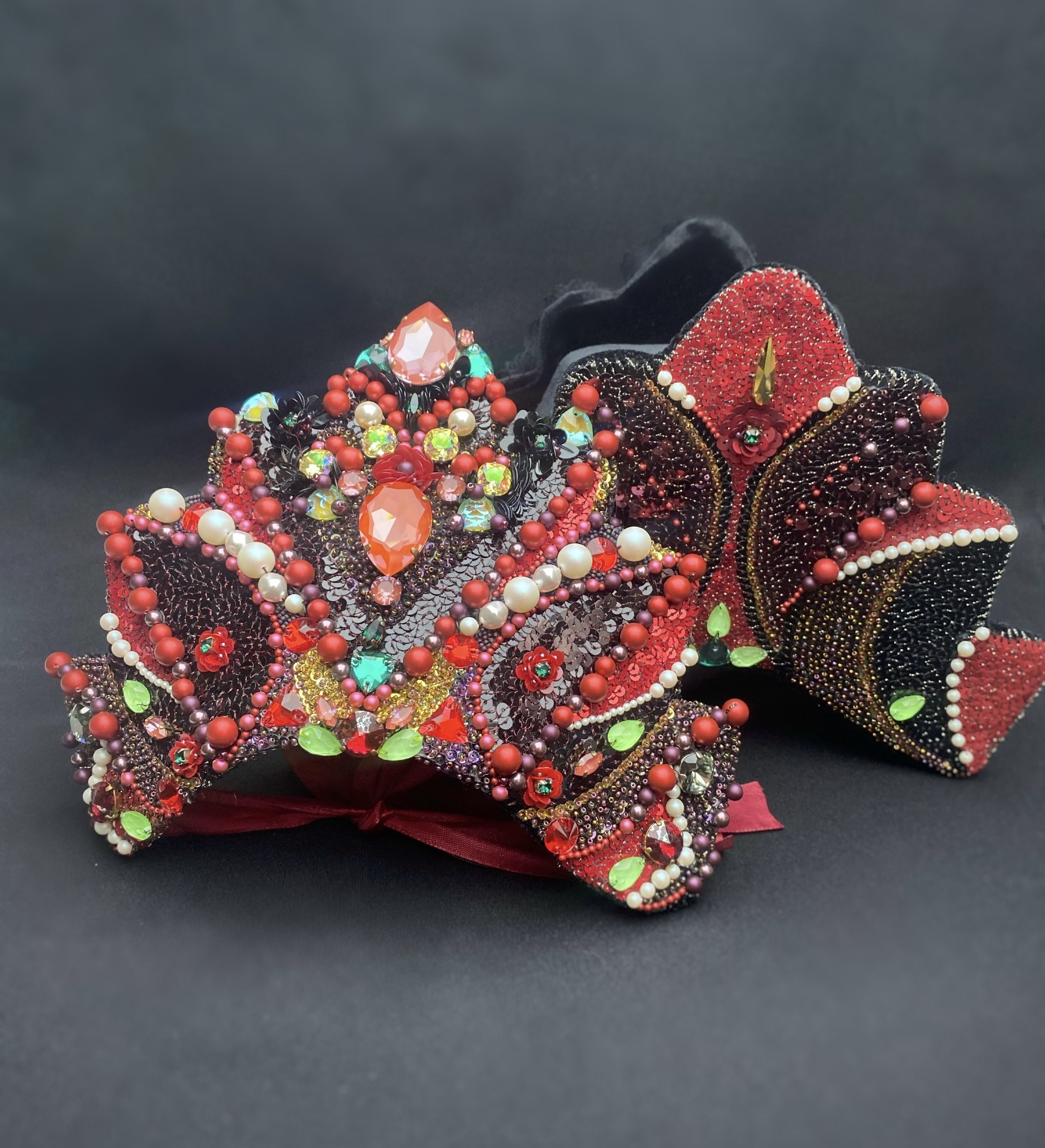 Что первое приходит в голову, вспоминая традиции - ну бесспорно Кокошник. Это же старинный русский головной убор. Его берегли для торжественных случаев, а конкурс, это же и есть торжество.