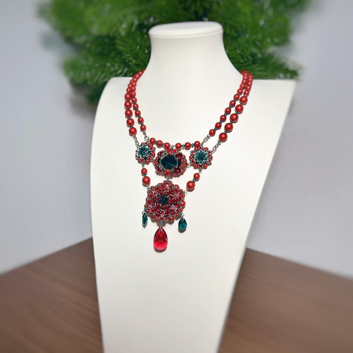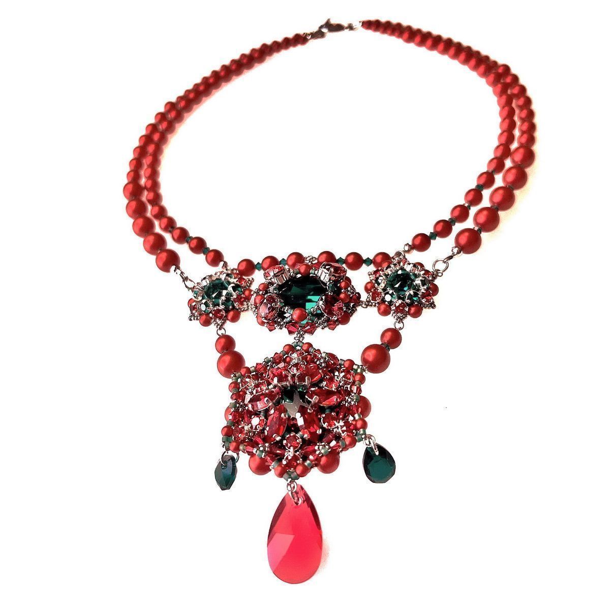 Конкурсное колье названо в честь рождественского цветка, который сопровождает меня на протяжении жизни. Все потому, что родилась в католическое рождество и с детства интересовалась традициями этого праздника. Так я узнала о пуансеттии, которая спустя время стала для меня талисманом и символом приближающихся праздников. Жемчуг цвета Rouge и элементы Scarlet и Emerald идеально передают оттенки рождественской звезды. Именно они вдохновили меня на создание традиционного цветка, позволяющего верить в лучшее будущее.