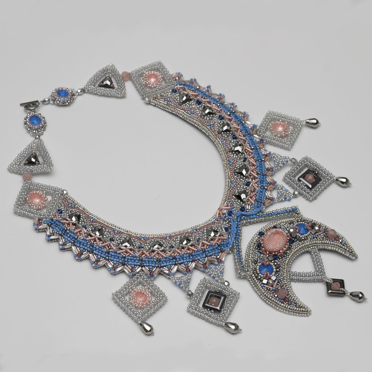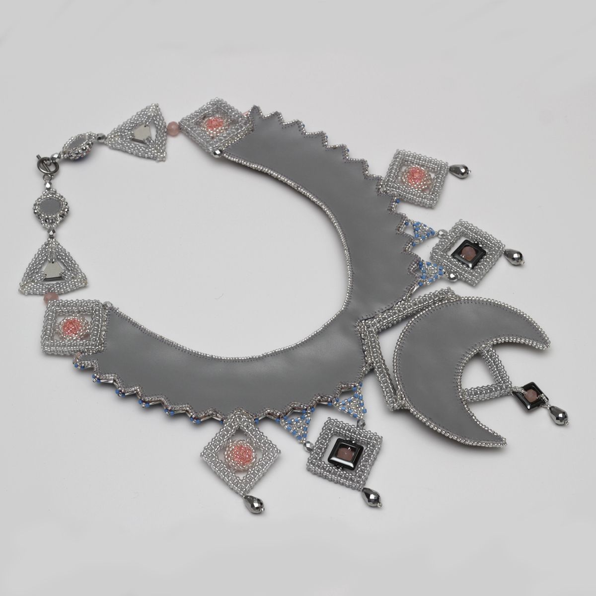 орнамент и форма колье. В нём переплелись различные линии и формы, которые