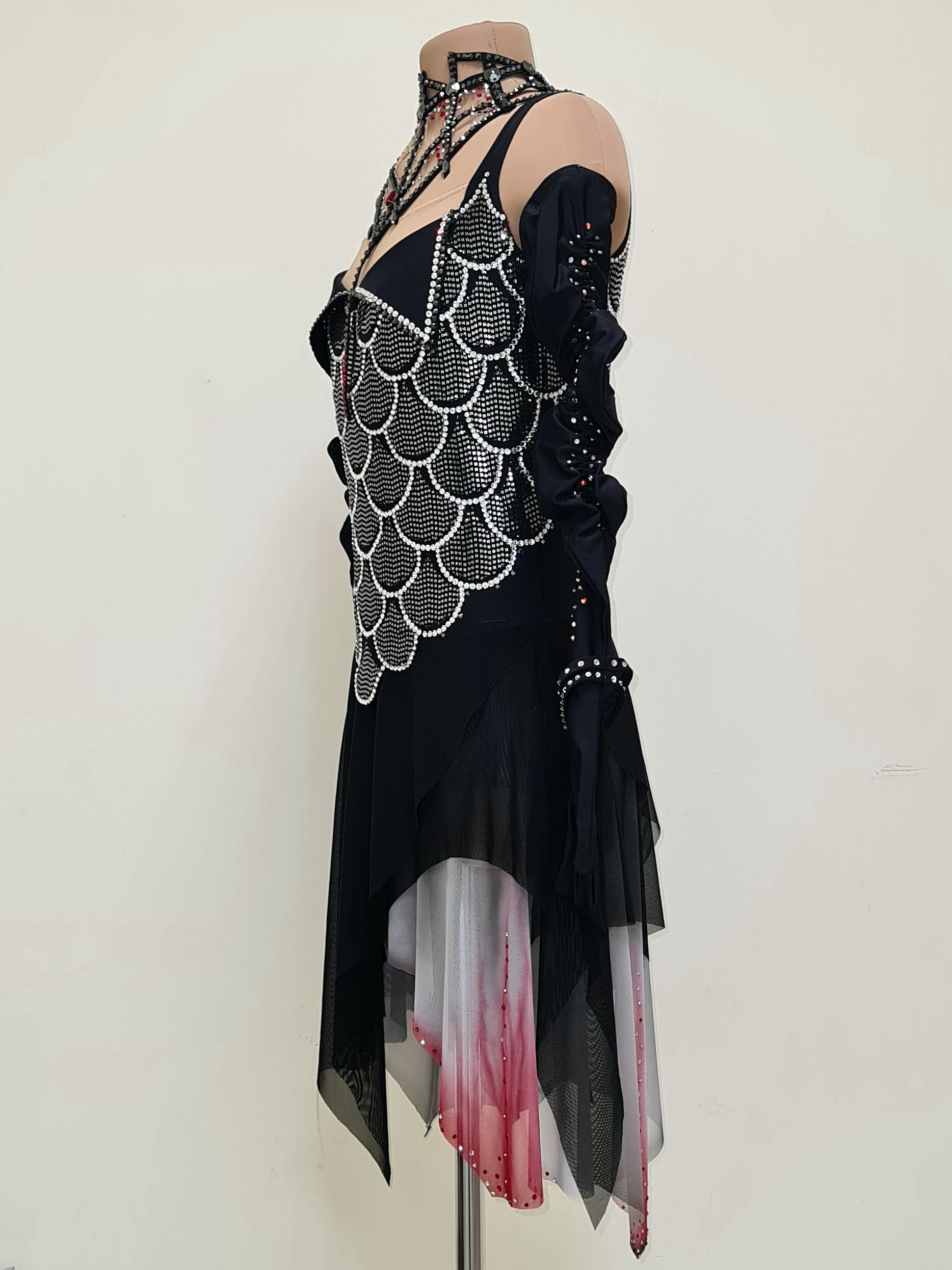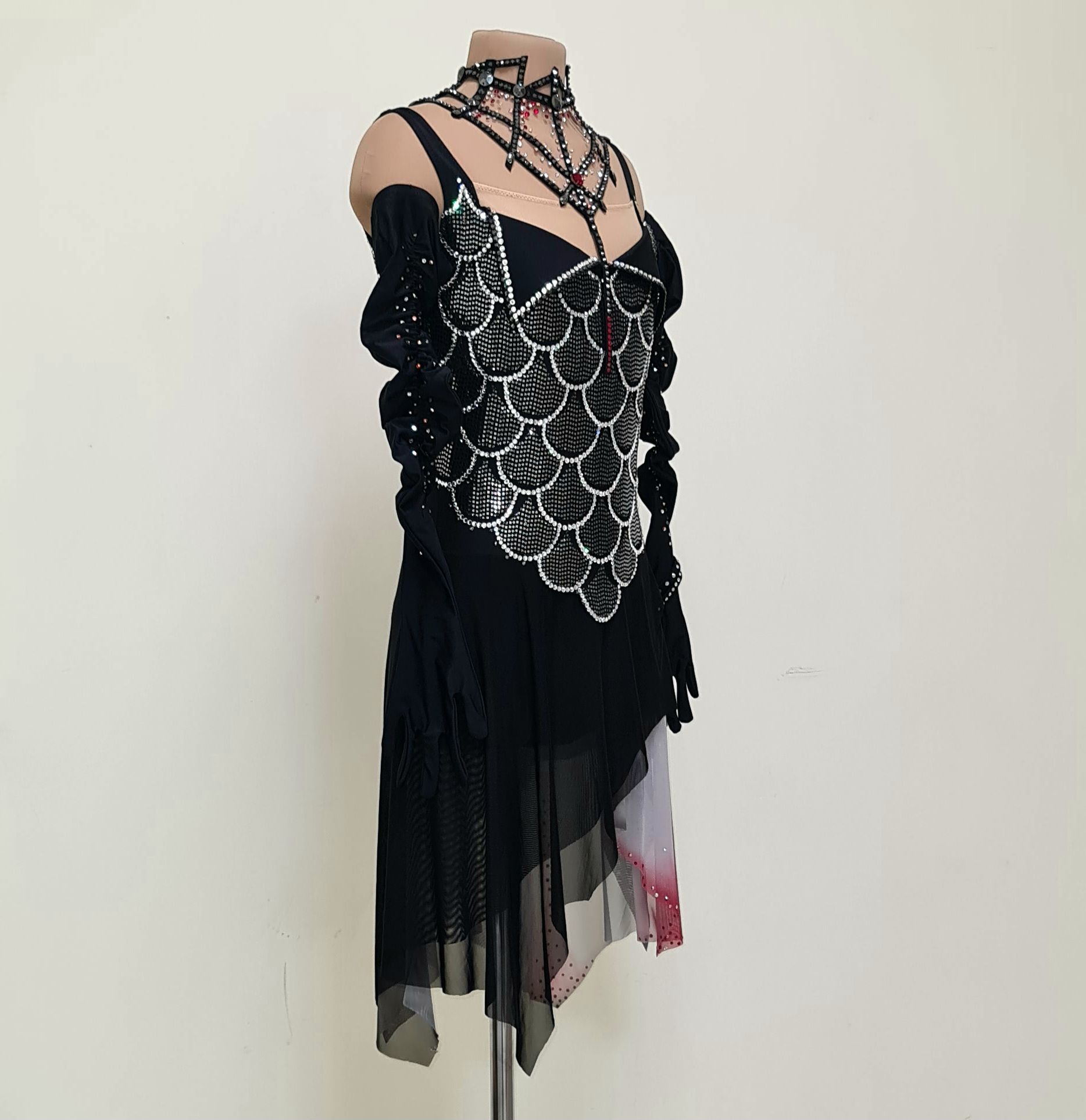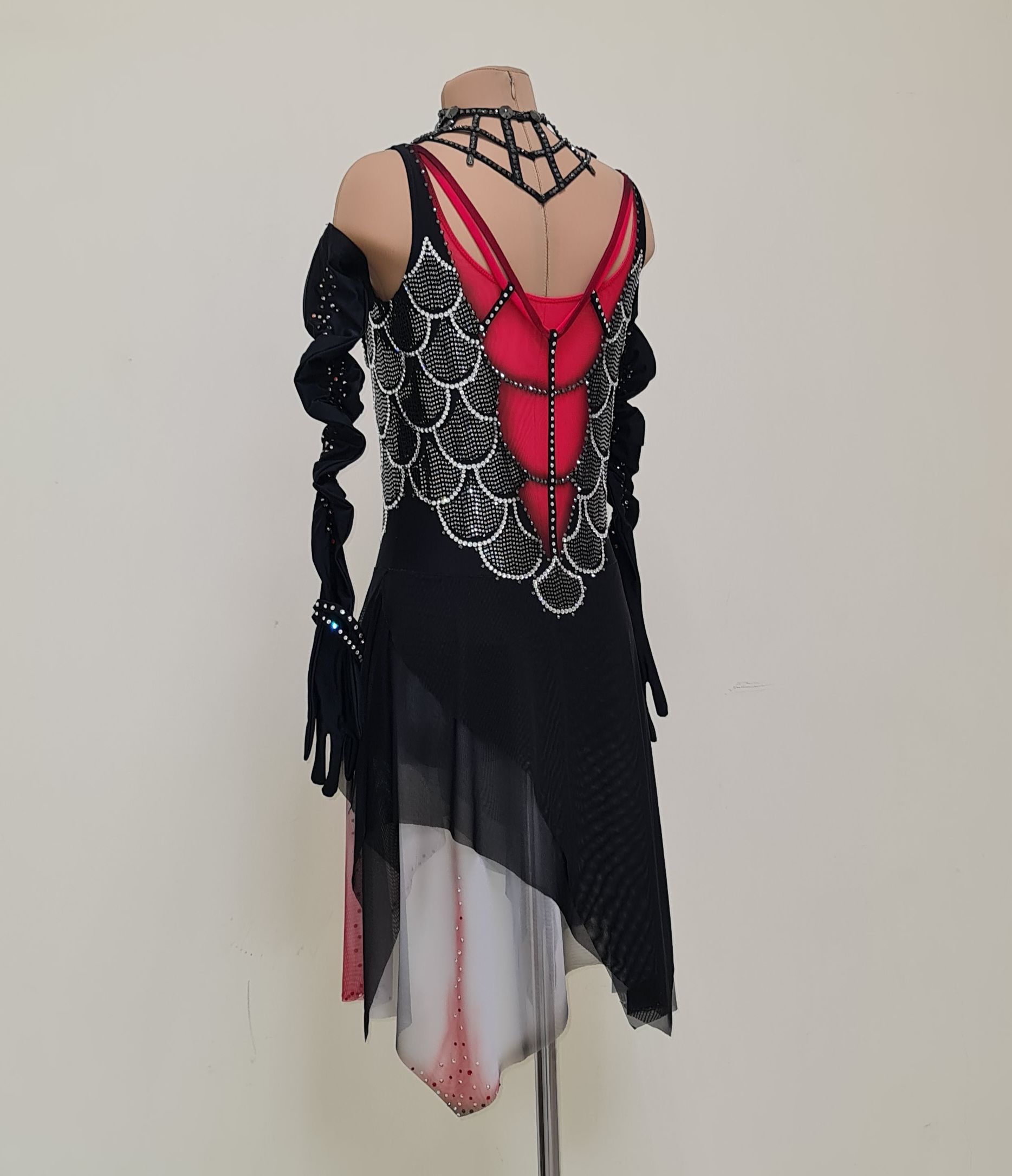 Тайна есть у каждого и в каждой истории. В данной работе раскрыта тема вампиров. После просмотра мюзикла "Бал вампиров" Венская версия 2009 года, захотелось отразить это в костюме для фигурного катания. Моя героиня с бледной кожей выбирает чёрный наряд с элементами декора ( перчатки, чёкер). Красные акценты делают её образ интересней, загадочней. Я представила как юная вампирша, отрываясь от пола кружит,  в так вальсу, со своим избранником. Блеск страз на платье и прикосновение к ним не сравнить ни с чем. Эта ночь будет незабываемой!