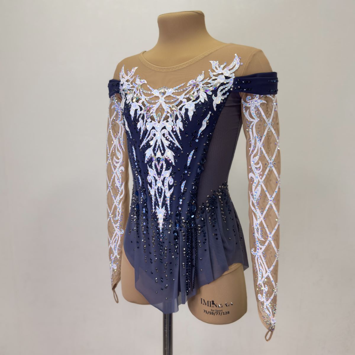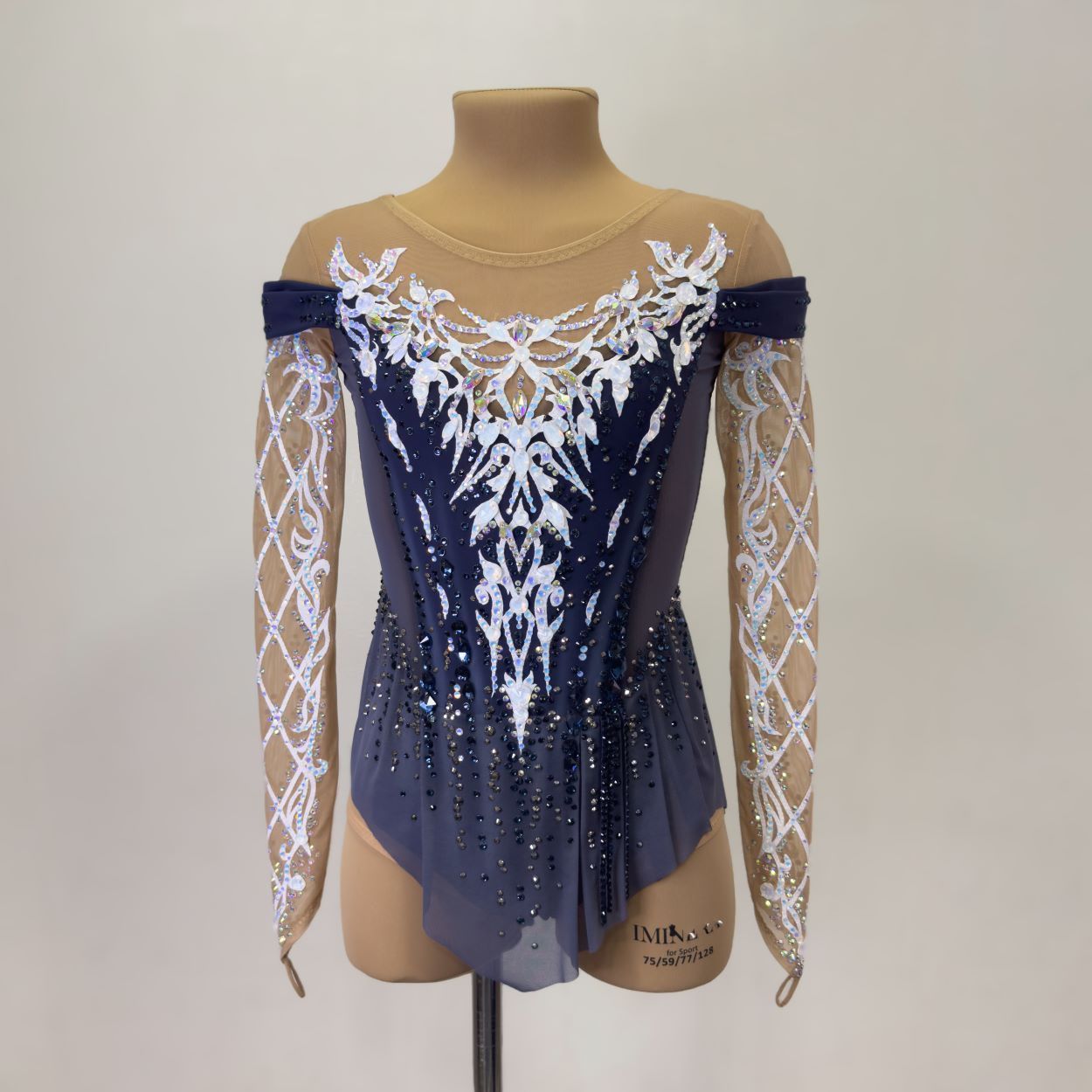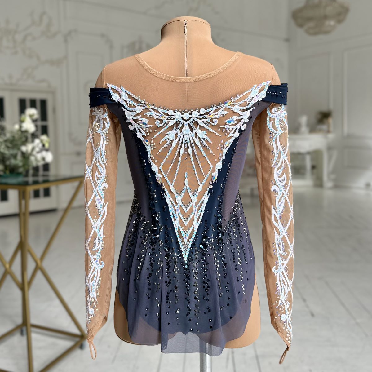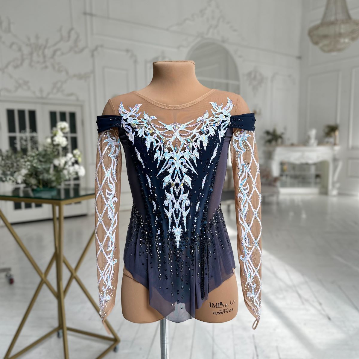Но главная магия — в сиянии. Белые стразы и кристаллы, рассыпанные по всему купальнику, — это не просто украшения. Это отблески тысяч огней хрустальных люстр, это свет, который не гаснет в залах с тех самых пор, когда здесь кружились пары под звуки Штрауса.