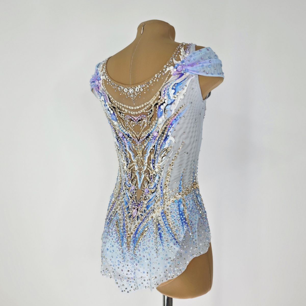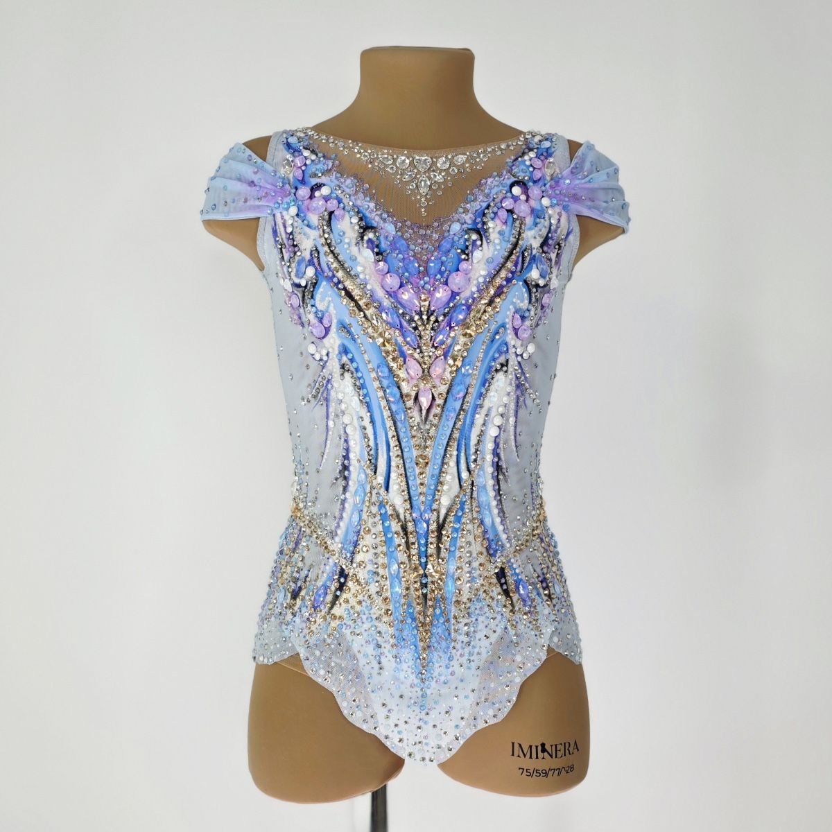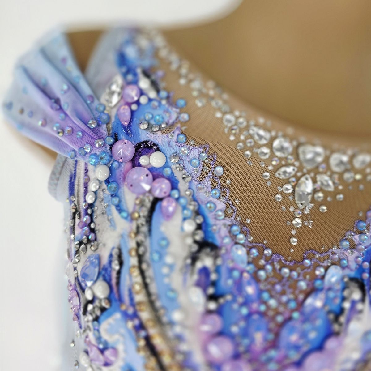 И в этот момент появилась она — лёгкая, словно дыхание, и сияющая, как утренний лёд в лучах солнца. Переливы голубого и сиреневого на её наряде напоминают хрустальные витражи, а каждая искра камней отражает музыку вечности.